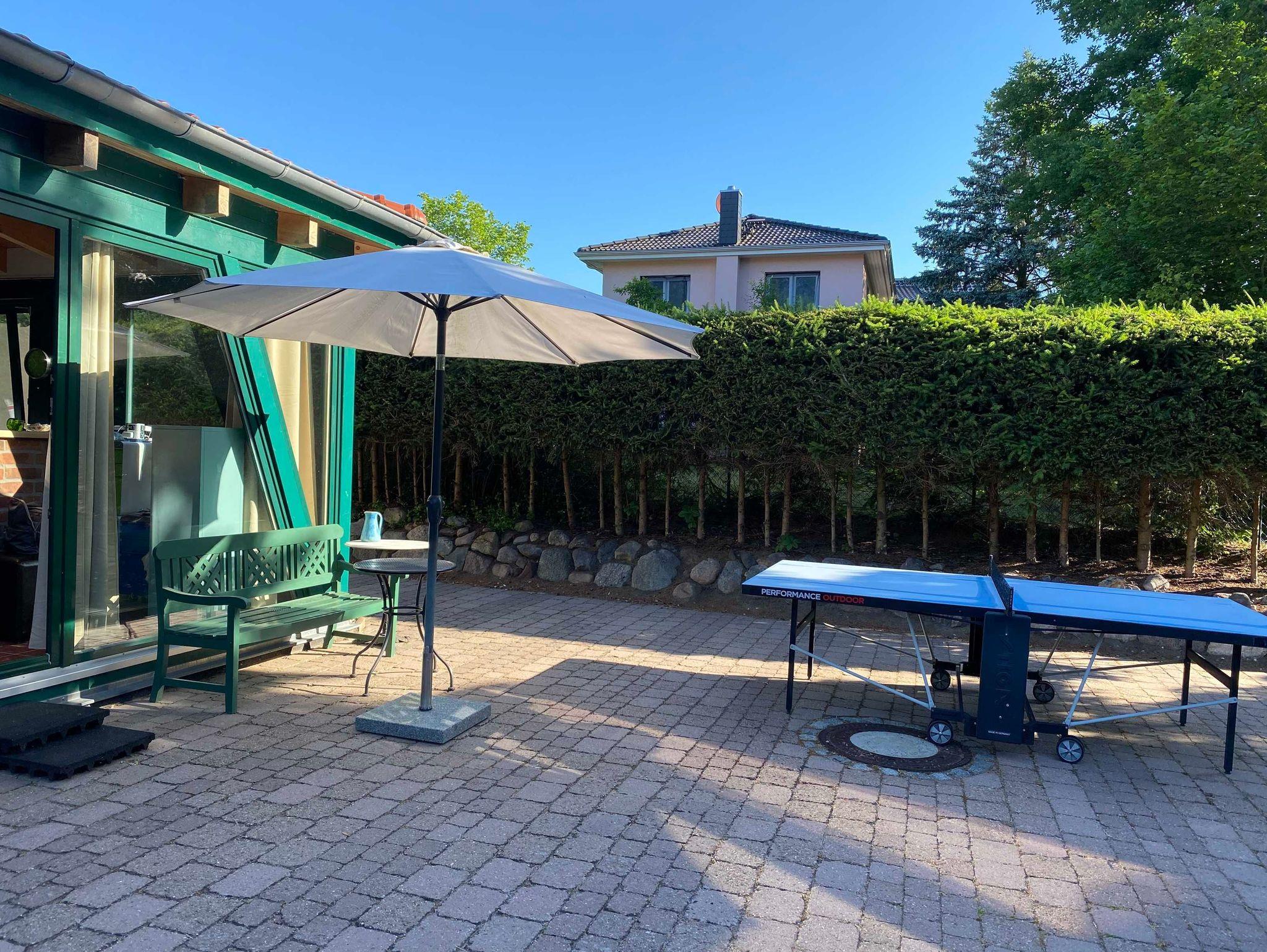 Draußen erwartet dich eine große Liegewiese mit Grillplatz und Tischtennisplatte ideal für sonnige Nachmittage und gesellige Abende.