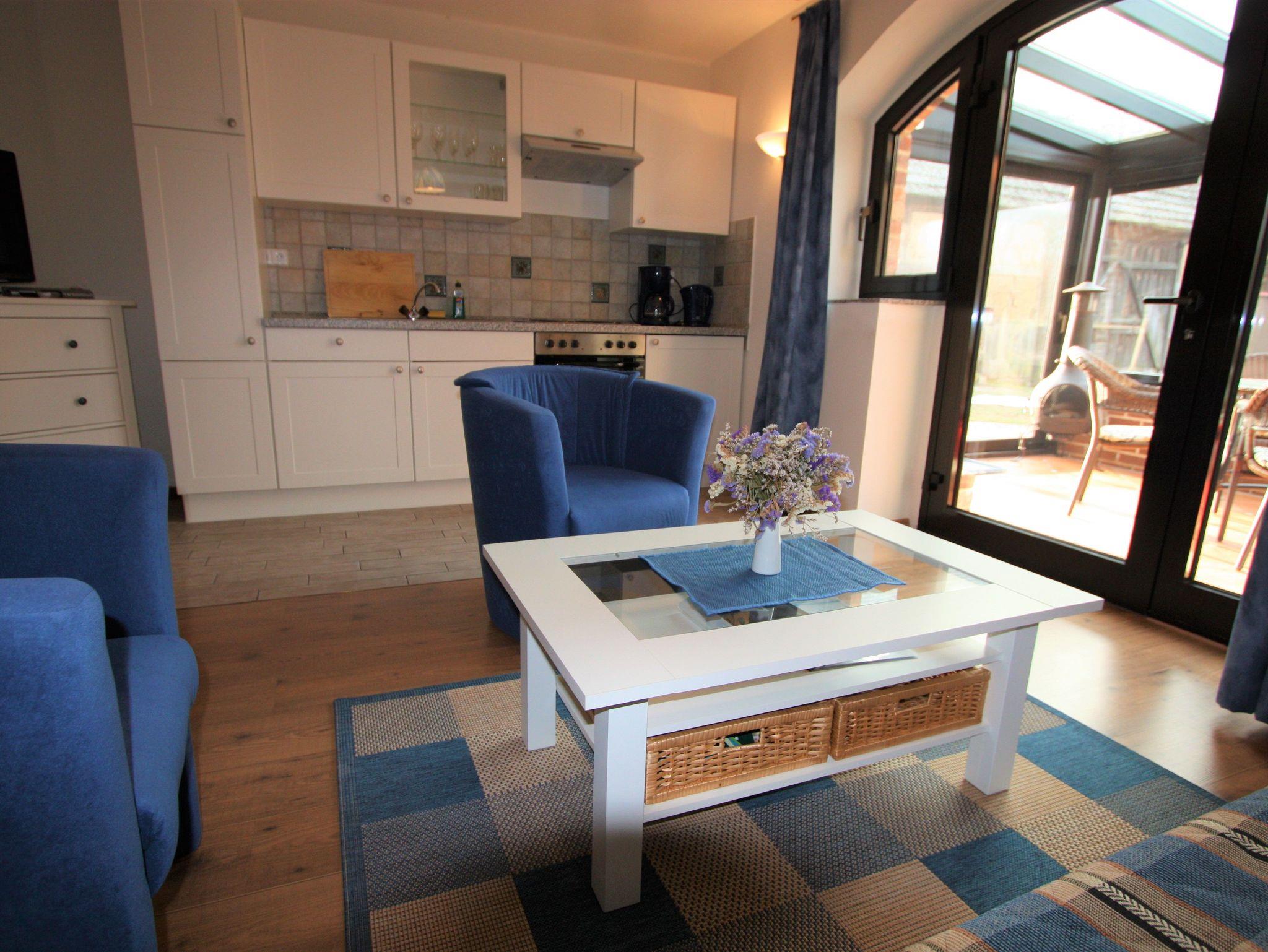 Die Landhaus-Maisonnette zum Hof erstreckt sich über 2 Etagen. In diesem verträumt romantischen Apartment fühlen Sie sich fast wie im Märchen. Das Schlafzimmer mit Doppelbett sowie das Badezimmer befinden sich auf der oberen Etage. Der Wohnraum mit einer Schlafcouch, Toilette und Küchenzeile befinden sich auf der unteren Etage. Vom Wintergarten aus haben Sie einen Blick auf den See und das ehemalige Bauerngehöft.