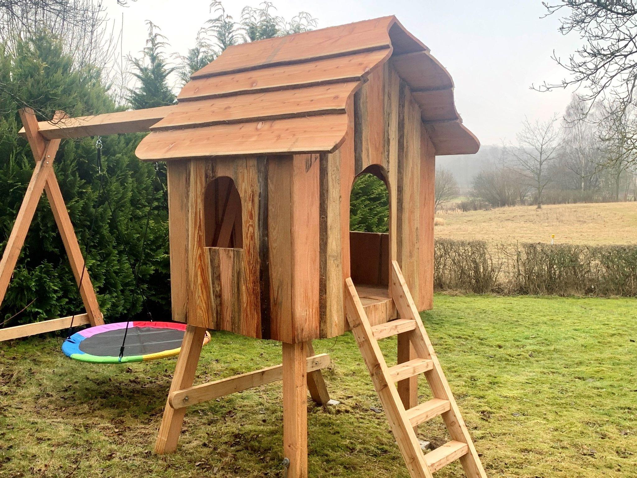 Um das Ferienhaus befindet sich ein großer gepflegter Garten mit einer Schaukel.