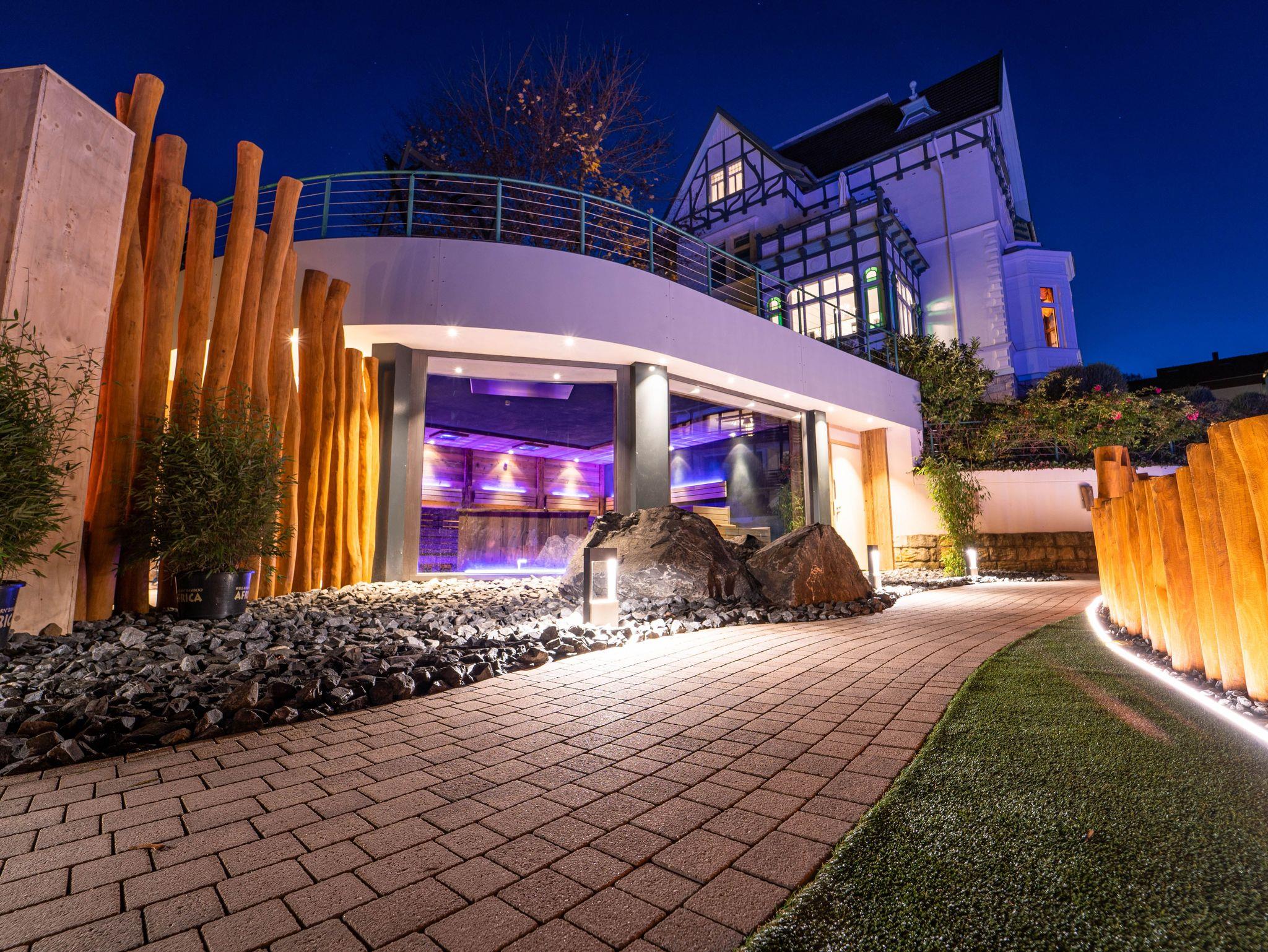 Als Gast des Ferienhauses ist die Nutzung des SPA & Wellness Paradieses im ca. sieben Gehminuten entfernten familiengeführten RoLigio® & Wellness Resort Romantischer Winkel inklusive. Auf einer Fläche 3.800 m² erwartet Sie die größte Hotel-Wellnesslandschaft im Harz. Genießen Sie eine völlig wetterunabhängige Badewelt, Saunalandschaft, einen ganzjährig beheizten Außenpool mit neuer angrenzender Panorama-Event-Außensauna sowie entspannte Behandlungen im RoLigio®-SPA.