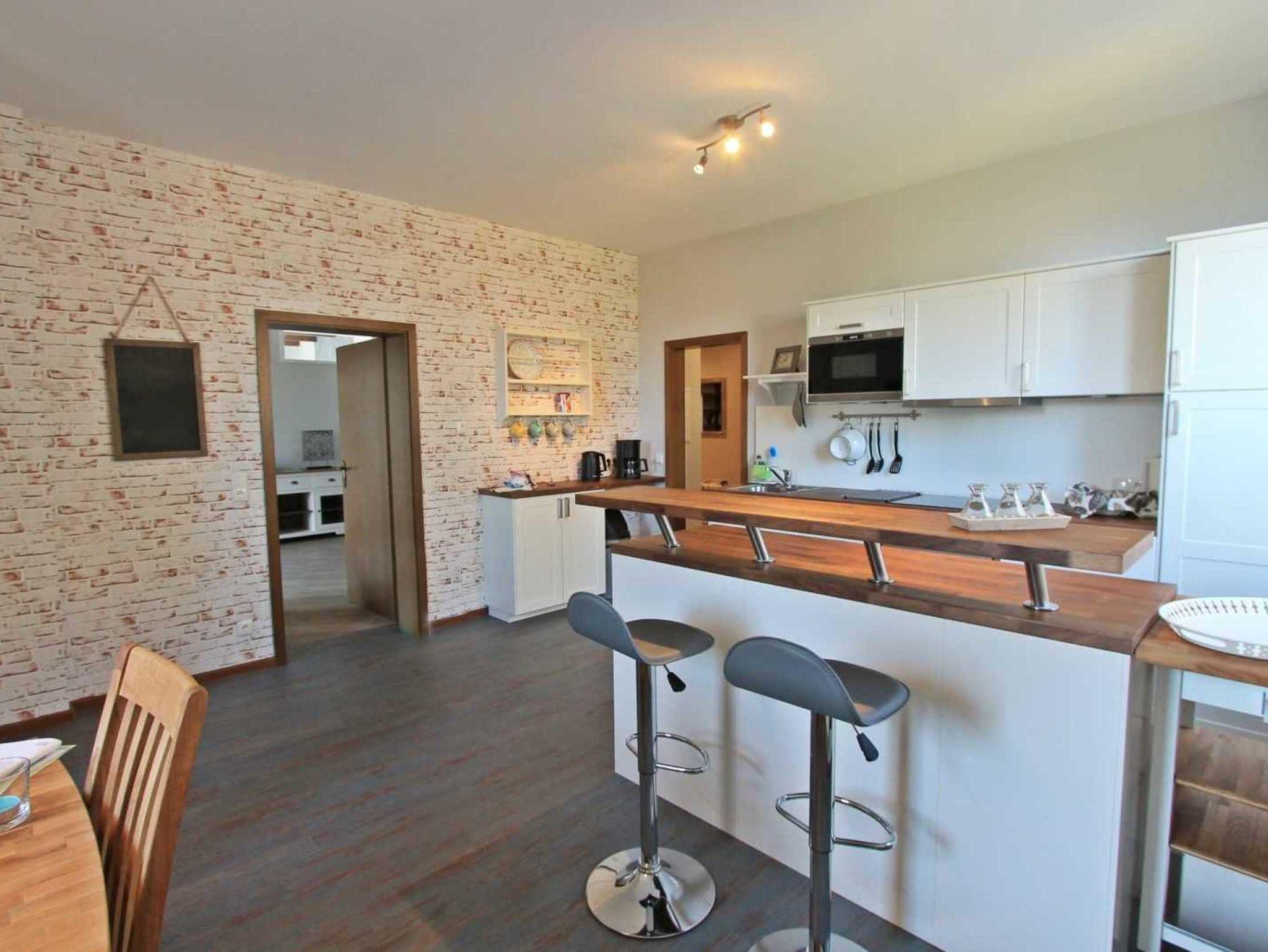 Die Küche ist mit Geschirrspüler, Ceranfeld, Backofen, Mikrowelle, Toaster, Wasserkocher und Kaffeemaschine ausgestattet. Handtücher und Bettwäsche sind vorhanden.