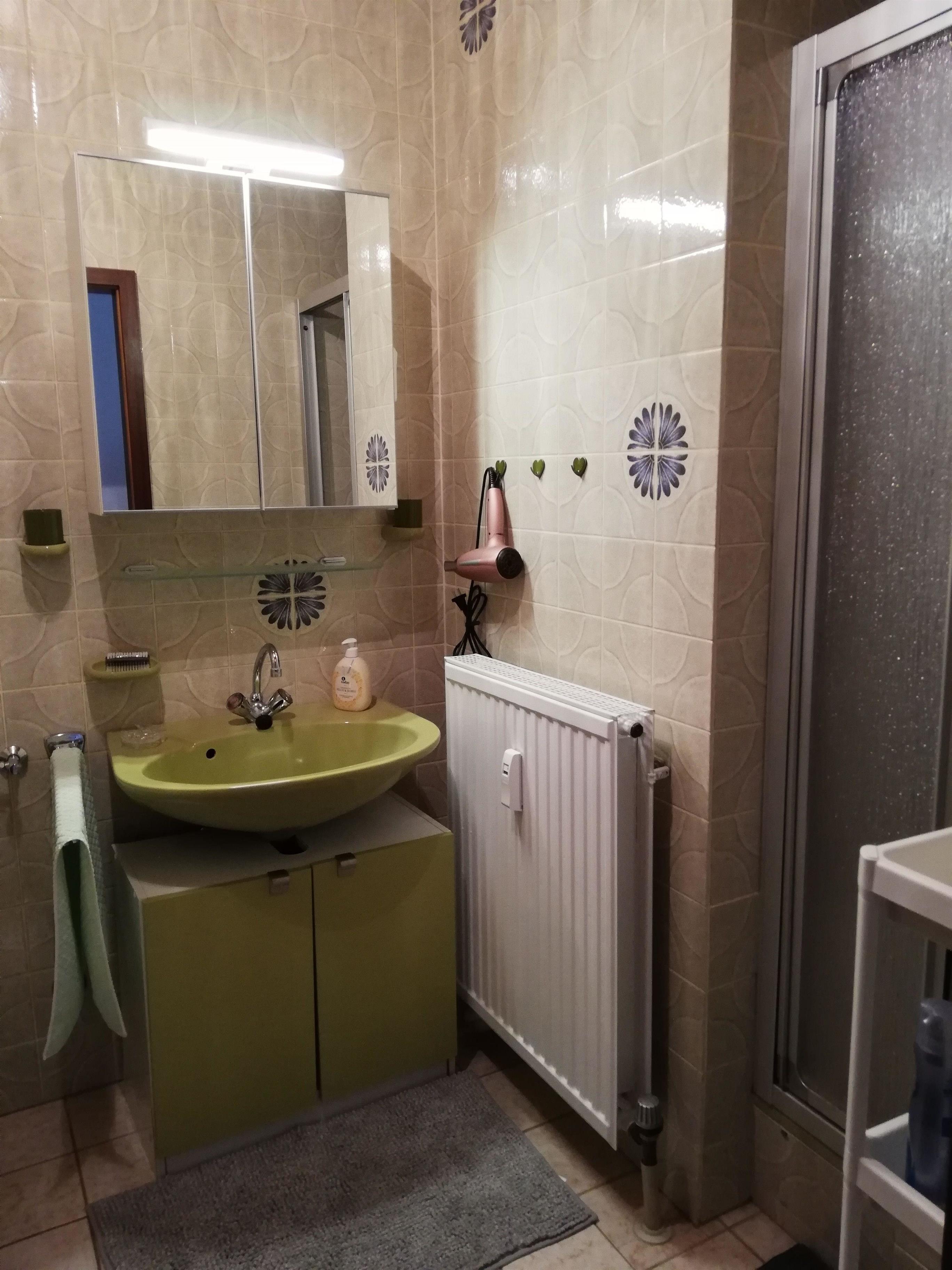 Im geräumigen Duschbad finden Sie eine Waschmaschine.