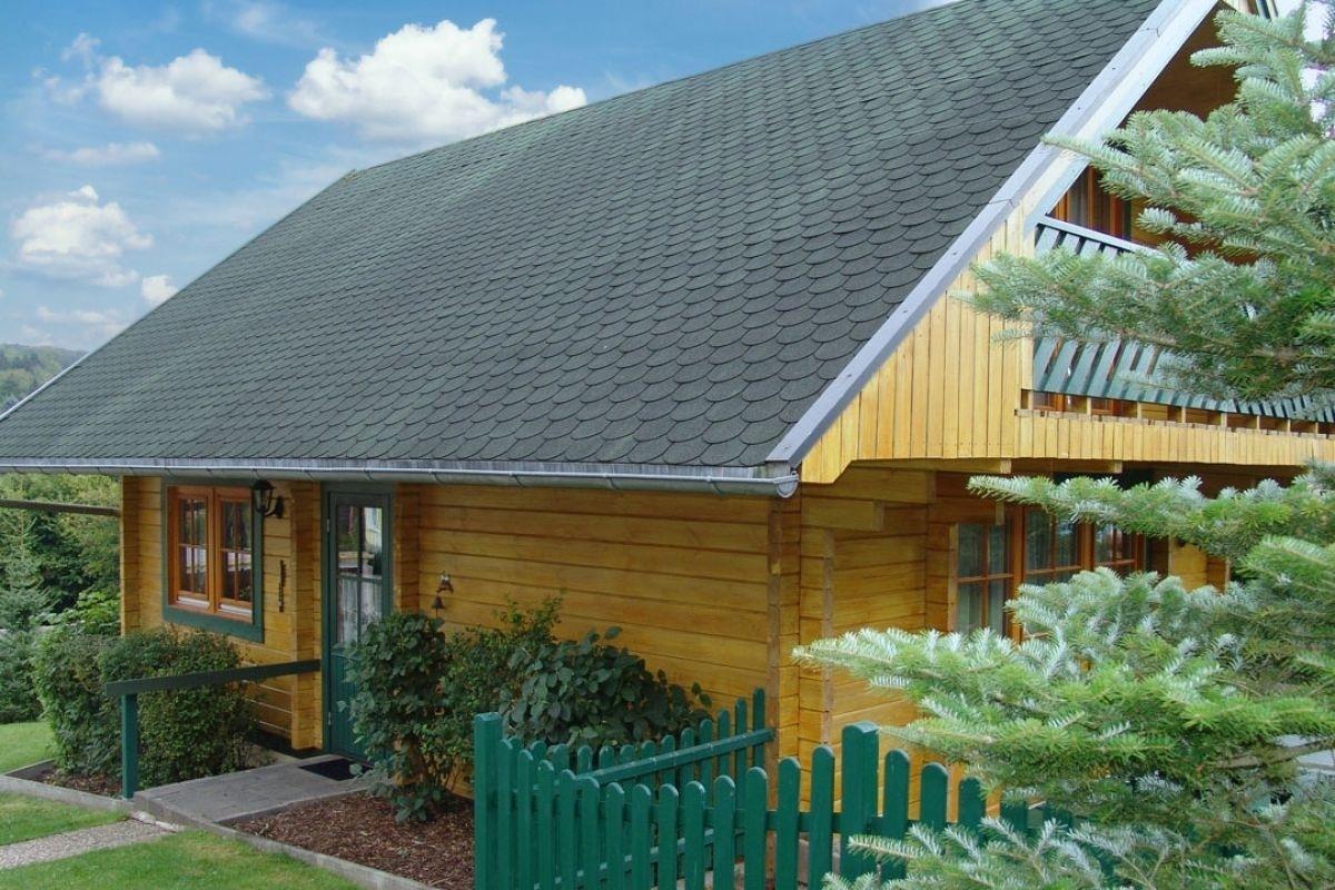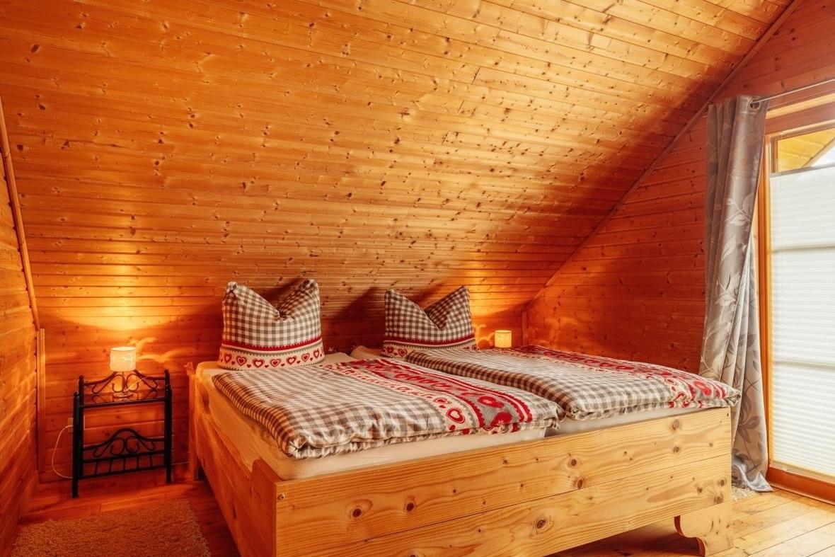 Das Blockhaus ist ca 80qm groß und erstreckt sich über 2 Etagen. Im Erdgeschoß befinden sich Küche, Bad und Wohnzimmer im Obergeschoß die Schlafräume. Das Ferienhaus ist für eine Belegung mit max. 6 Personen ausgestattet. Es verfügt über eine Terrasse, einen kleinen Garten und ist komplett eingezäunt. Das Holz ist naturbelassen.