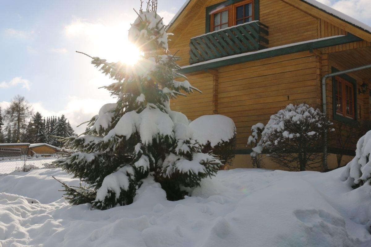 Das Blockhaus ist komplett mit einem ca 80 cm hohen Zaun eingezäunt. Die nach Süden ausgerichtete Terrasse eignet sich hervorragend zum entspannen, sonnenbaden oder grillen. Gartenmöbel stehen kostenlos zur Verfügung.