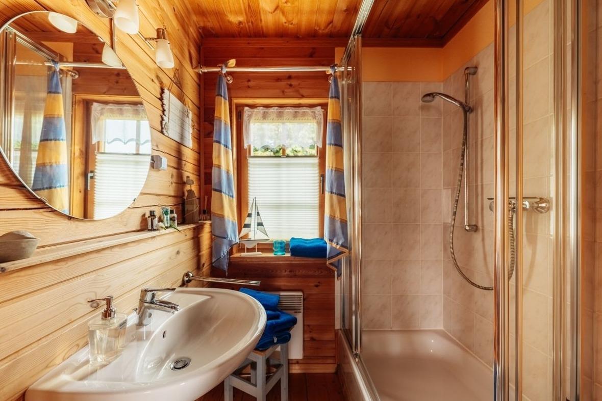 Das Badezimmer verfügt über eine Dusche.