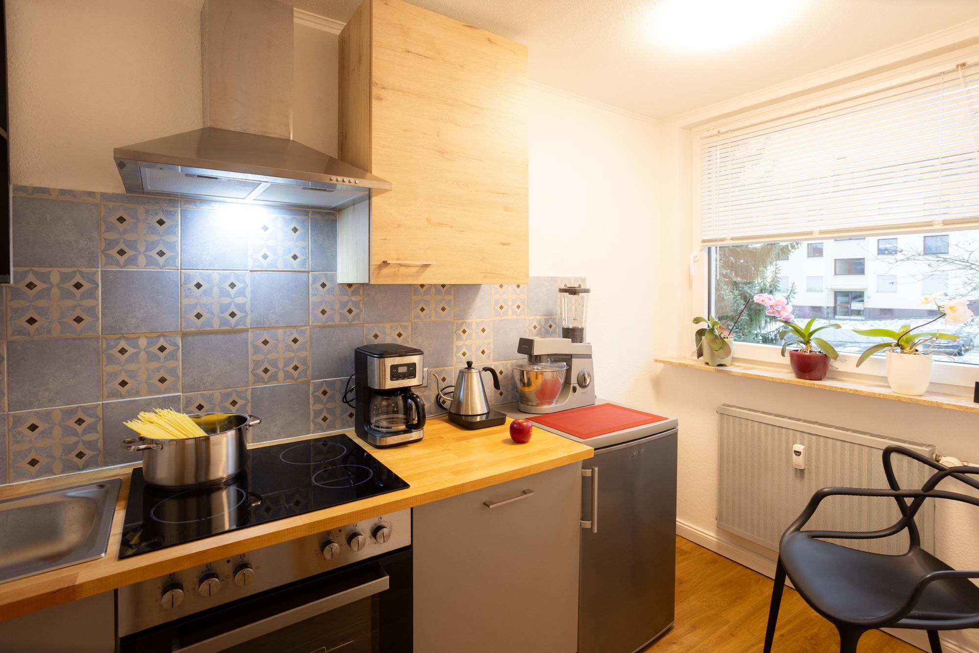 Hochwertige Möbel, harmonische Farben und sorgfältig ausgewählte Dekoration sorgen für ein Ambiente, das Ruhe und Gemütlichkeit ausstrahlt. Eine moderne Küchenzeile mit allem, was Sie für die Zubereitung von Mahlzeiten benötigen, von einem Kochfeld bis hin zu edlem Geschirr. Ein komfortables Schrankbett mit weichen Textilien lädt zu erholsamen Nächten ein. Als Ausweichmöglichkeit steht Ihnen eine Schlafcouch zur Verfügung. Eine gemütliche Sitzecke mit Smart-TV bietet Raum zum Entspannen nach einem Tag in der Natur. Das Bad sticht mit stilvollem Design durch Dusche, Waschtisch und WC hervor. Wellnessangebote stehen Ihnen im gegenüberliegenden Hotel zur Verfügung. Wäschepakete sind beim Vemieter optional zubuchbar. Das Apartment liegt ruhig und zentral im zweiten Stock einer kleinen Wohnanlage (kein Aufzug vorhanden), nur wenige Minuten vom Kurpark und den Wanderwegen des Harzes entfernt. Egal, ob Sie die Natur genießen, historische Orte entdecken oder einfach entspannen möchten – "HarzZeit Bad Sachsa" ist der ideale Ausgangspunkt. Genießen Sie die Symbiose aus stilvoller Einrichtung und der natürlichen Schönheit des Harzes. Wir freuen uns darauf, Sie willkommen zu heißen!