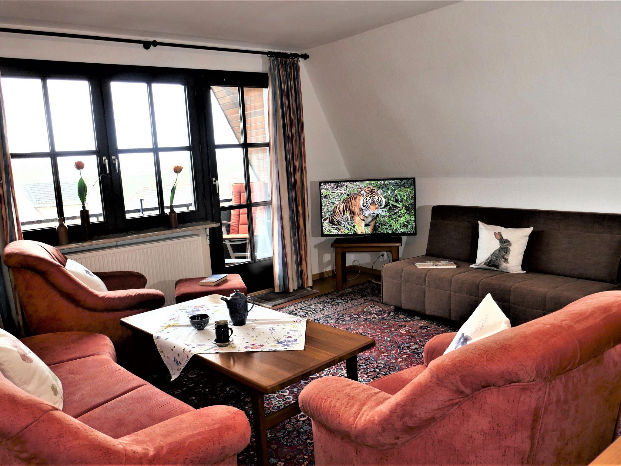 Es erwartet Sie eine geräumige, komplett ausgestattete Nichtraucher-Ferienwohnung in der zweiten Etage, die sich in einem ruhigen Wohngebiet (Sackgasse), ca. drei Gehminuten vom historischen Stadtzentrum und ca. zehn Gehminuten vom Kurpark entfernt befindet.