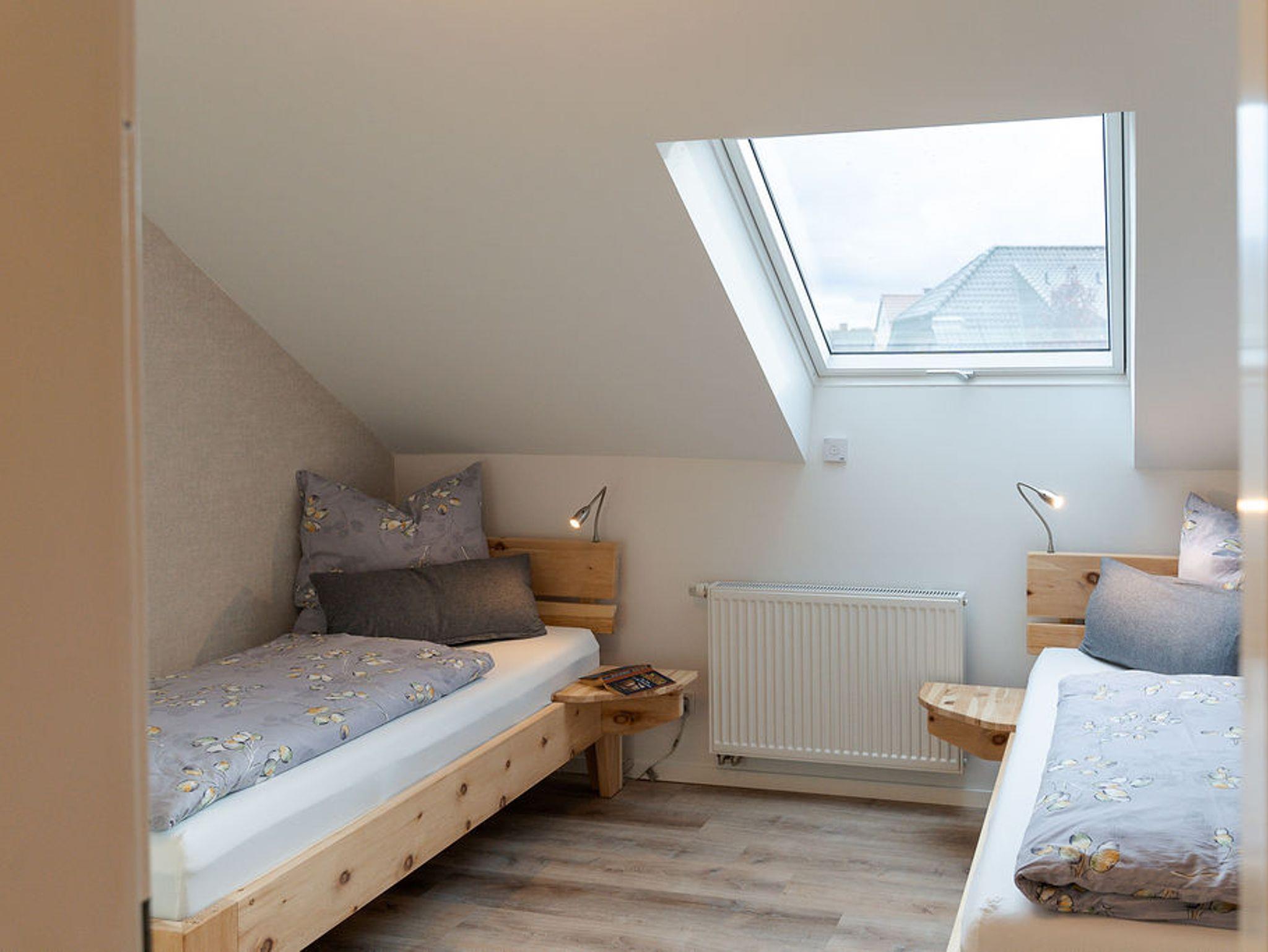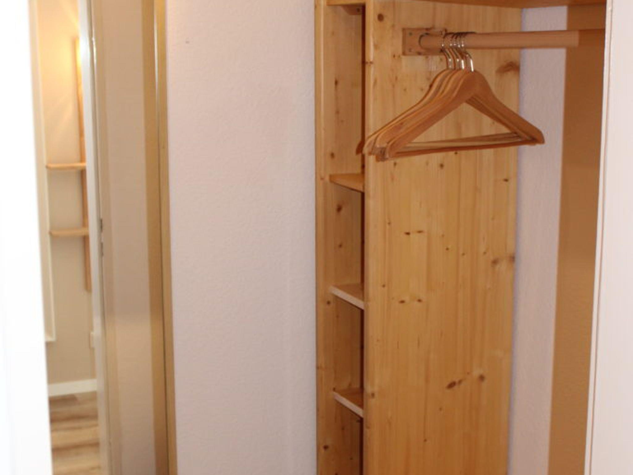 Das Schlafzimmer umfasst 2 Einzelbetten aus Zirbenholz geschreinert (je 90 x 200 cm), Schrank, Nachttische, Ganzkörperspiegel, Rollade zum Verdunkeln und Kofferablage. Auf Wunsch können die beiden Einzelbetten zu einem komfortablen Doppelbett zusammengestellt werden. Ein Garderobenraum ist ebenfalls vorhanden.