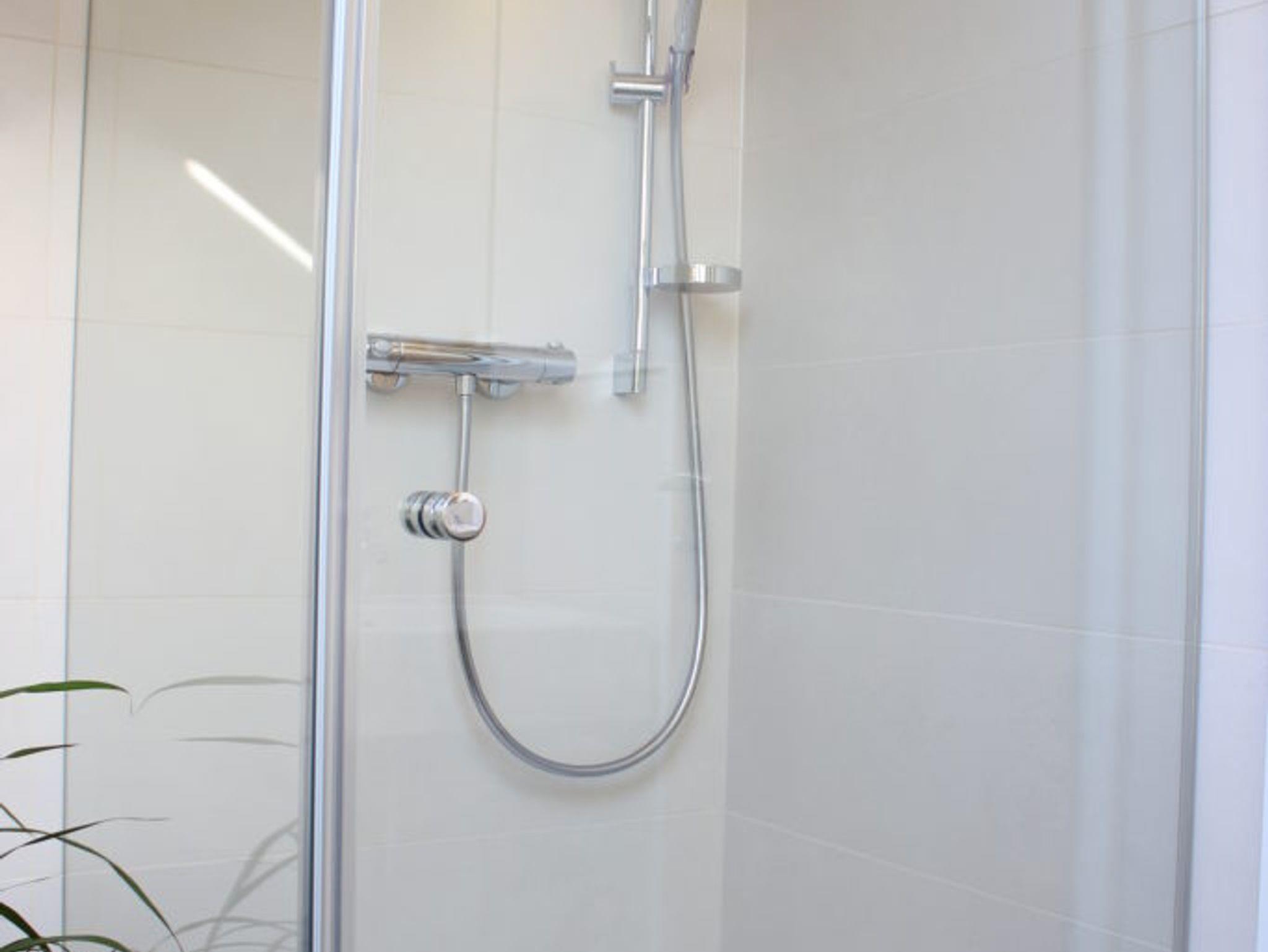 Das moderne Bad mit Dusche, WC und eingebautem Radio sorgt für einen angenehmen Start in den Tag.