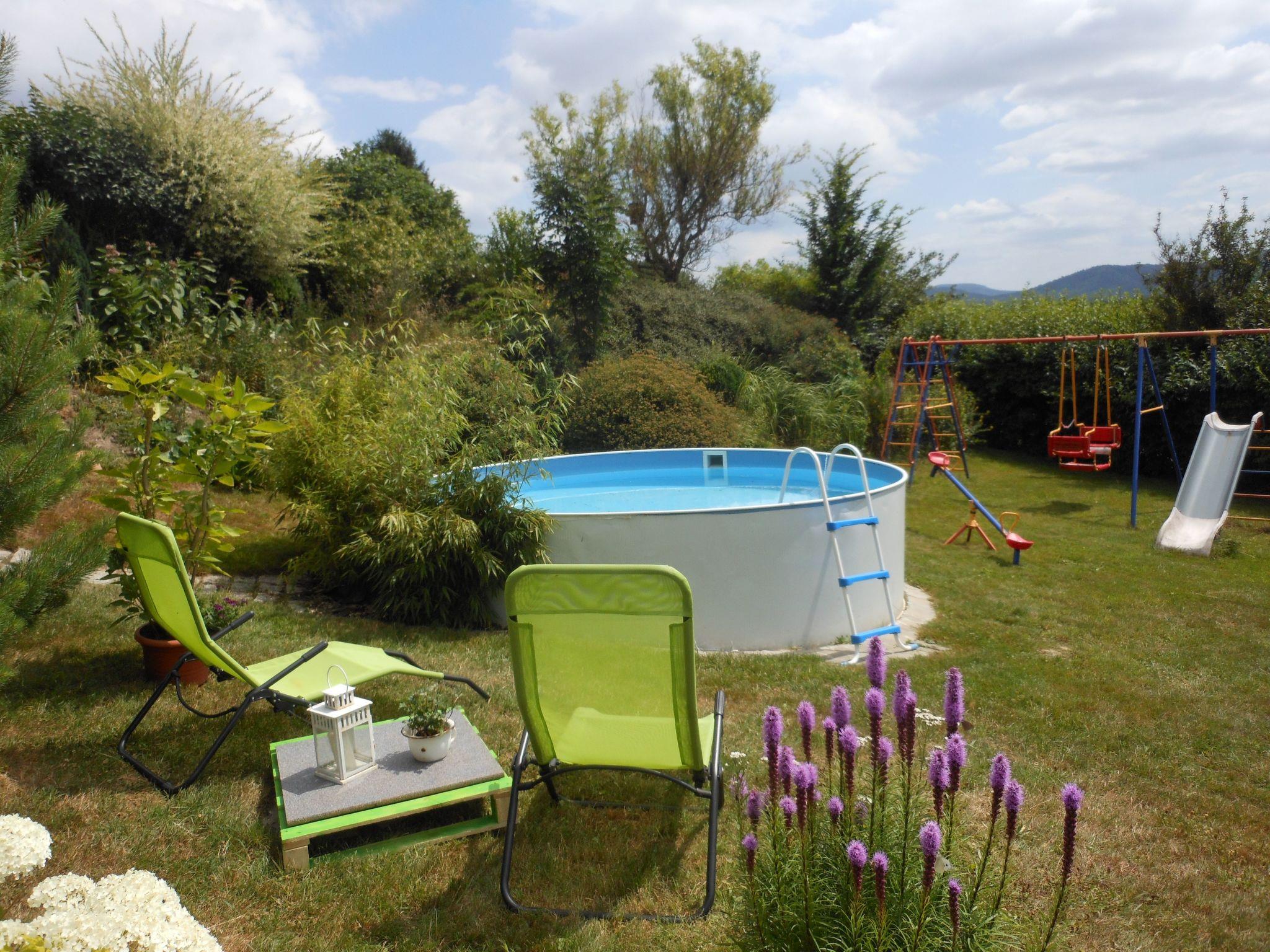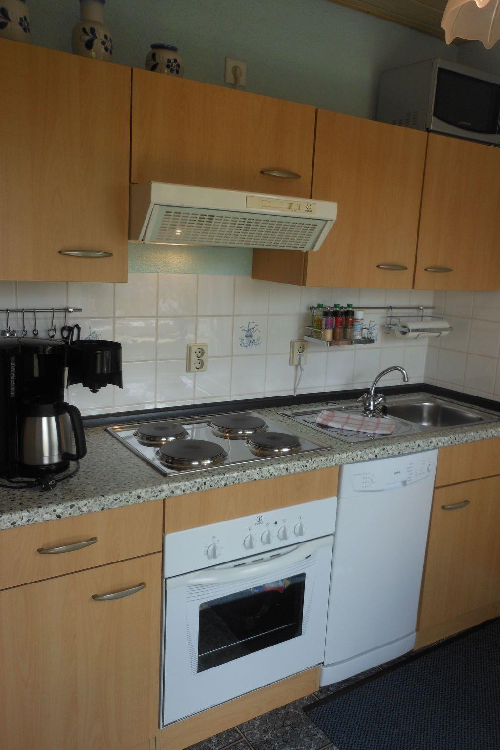 Our house: In the living room, with central heating, there is a large dining table, a couch and a tiled stove for cosy hours, there is also a radio, satellite TV and DVD. The kitchen is fully equipped, e.g. 4 plate electric cooker, oven and microwave. The bedroom has a double bed and you do not have to worry about bed linen. A cot and high chair are available. There are also two bathrooms in the holiday flat, where you will also find towels.