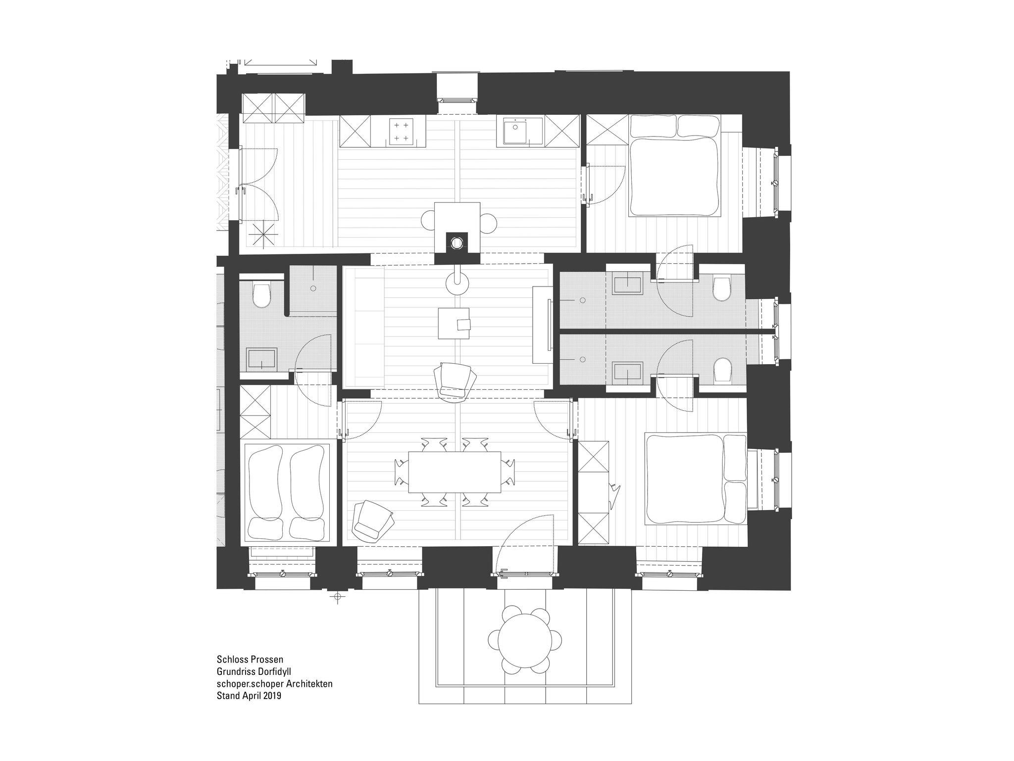 Schloss Prossen, Apartment Dorfidyll, 3 Schlafräume