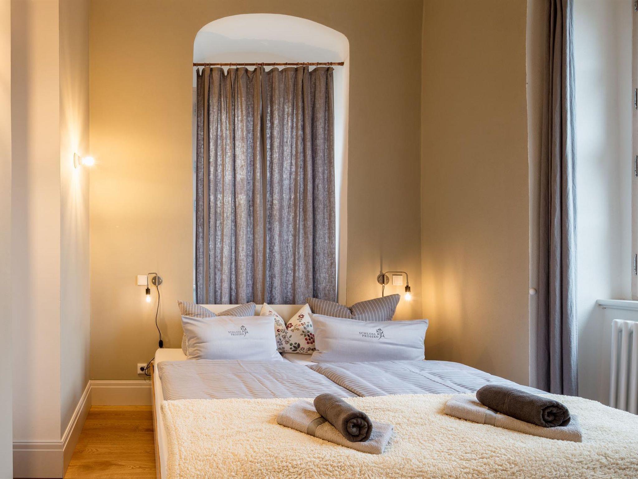 2019 wurden die Restaurierung des barocken Refugiums und der Umbau zu einer stilvollen Ferienresidenz abgeschlossen. Das Haus bietet zehn individuell gestaltete Komfort-Appartements bzw. Suiten für je 2 bis 6 Personen. Alle Wohnungen haben voll ausgestattete Küchen. Unsere Frühstückskörbe sorgen für einen entspannten Start in den Tag.
