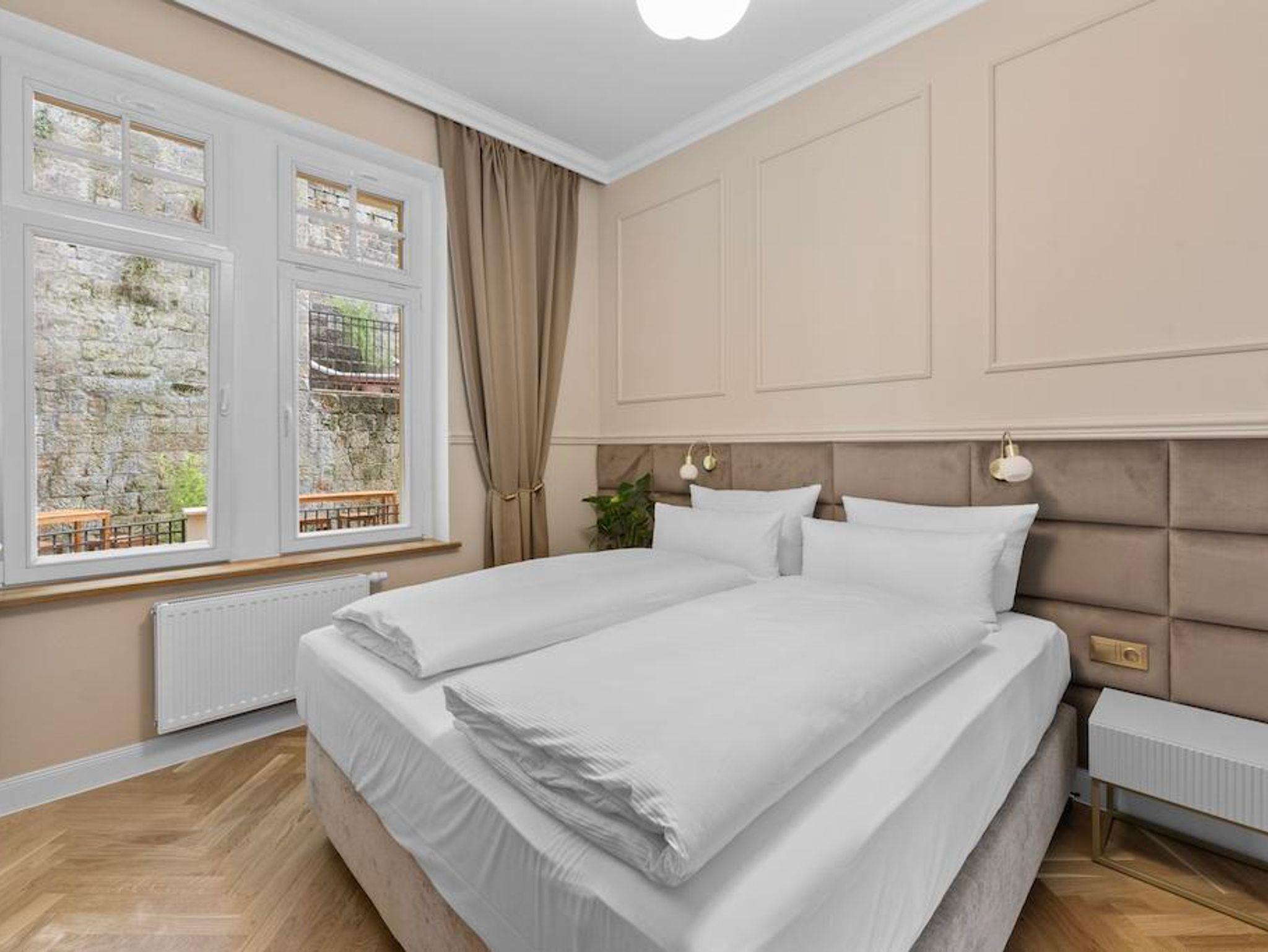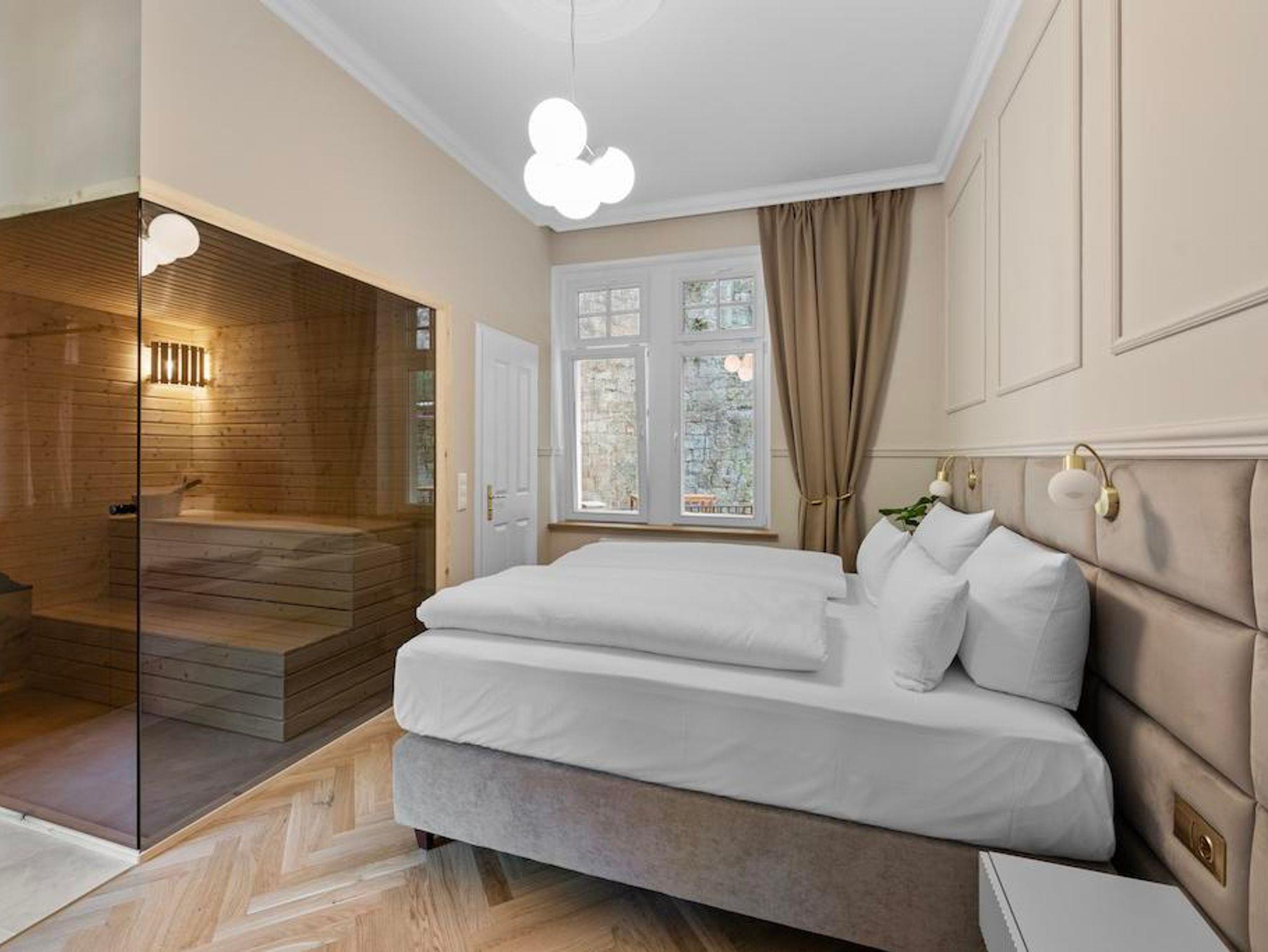 Genießen Sie hochwertige Boxspringbetten, luxuriöse Bettwäsche, elegantes Fischgrätenparkett und eine private Sauna. Historischer Charme trifft modernen Luxus - Ihr neues Zuhause fernab von Zuhause.