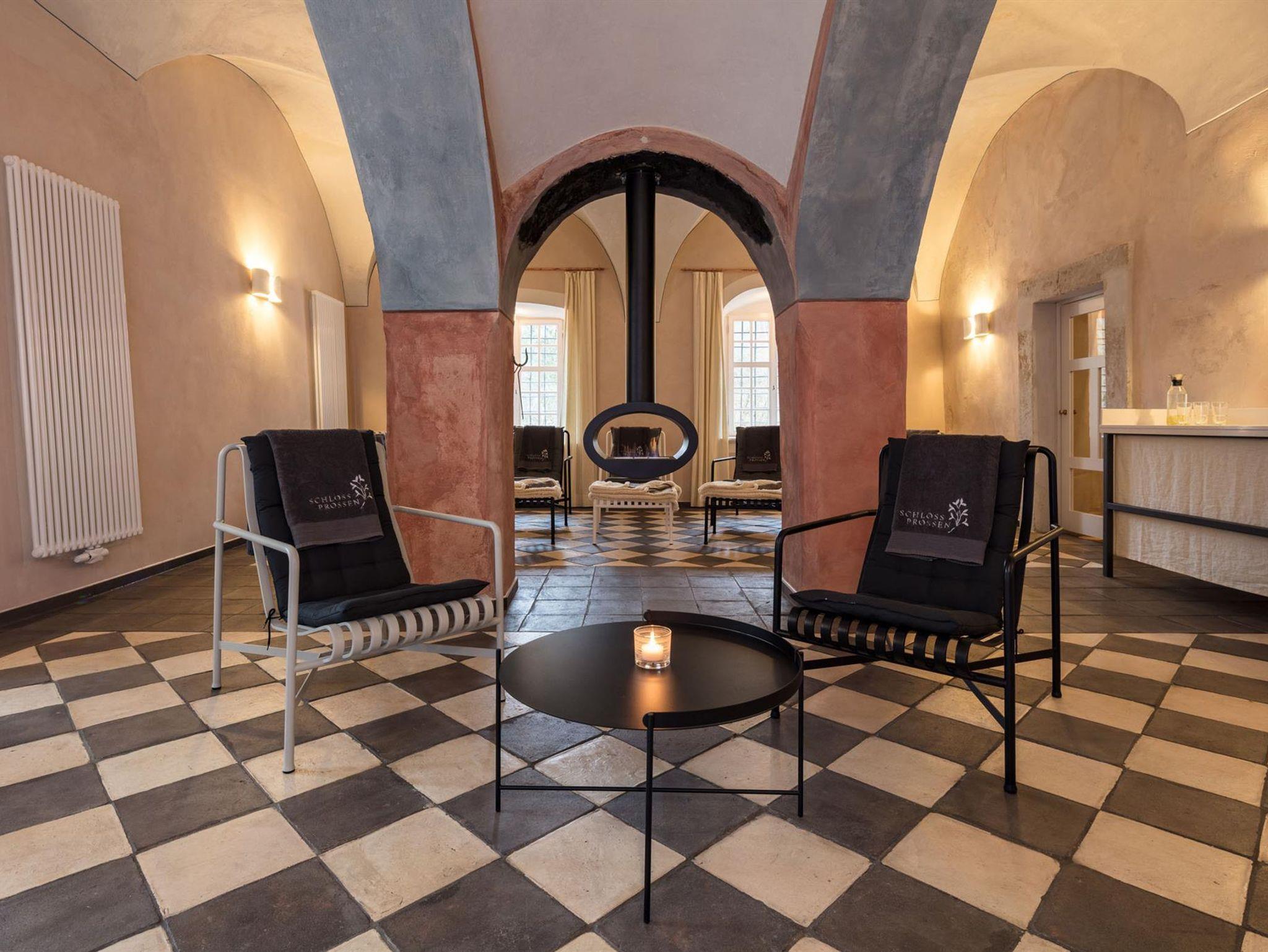 Erholung finden Sie im idyllischen Schlossgarten oder im malerischen Pavillon mit Blick auf die Elbe und den imposanten Lilienstein. Oder Sie entspannen in unserer hauseigenen Saunalandschaft im historischen Schlossgewölbe.