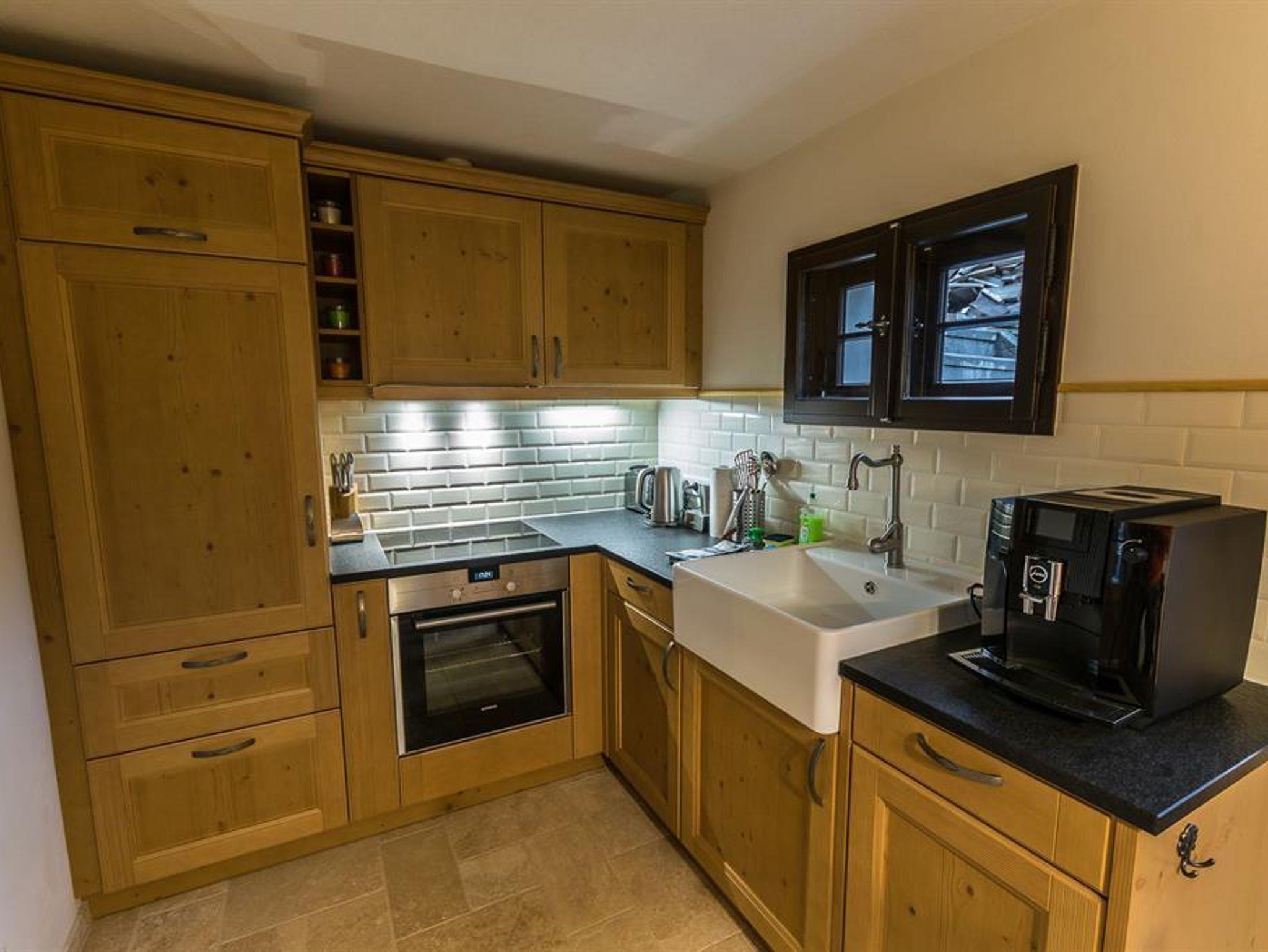 Im Erdgeschoss dieser 120 m² großen Ferienwohnung befinden sich ein gemütliches Wohnzimmer (ca. 16 m²) mit Kamin, und Flat-TV, eine komplett eingerichtete, neue Küche (ca. 10 m²) mit Ceranfeld, Kühlschrank, Geschirrspüler, Backofen, Kaffeeautomat (Bohnen), Toaster und Wasserkocher. In der Küche steht eine Eckbank als Essbereich für bis zu 6 Personen mit Zugang zur Terrasse. Weiterhin gibt es ein Badezimmer mit Dusche/WC sowie Zugang zur späteren Sauna.