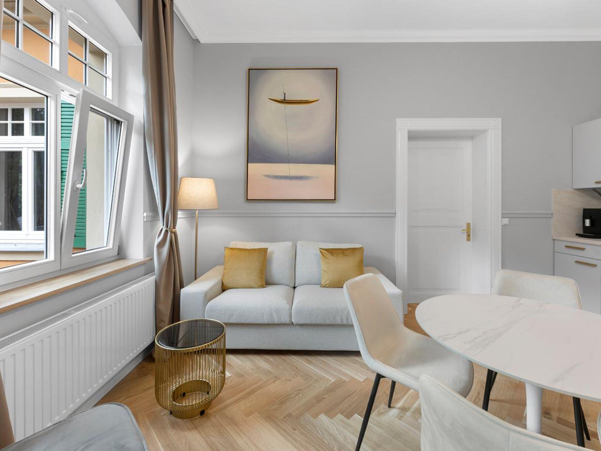 Genießen Sie hochwertige Boxspringbetten, luxuriöse Bettwäsche, elegantes Fischgrätenparkett und eine private Sauna. Entspannen Sie auf Ihrer Terrasse. Historischer Charme trifft modernen Luxus - Ihr neues Zuhause fernab von Zuhause.