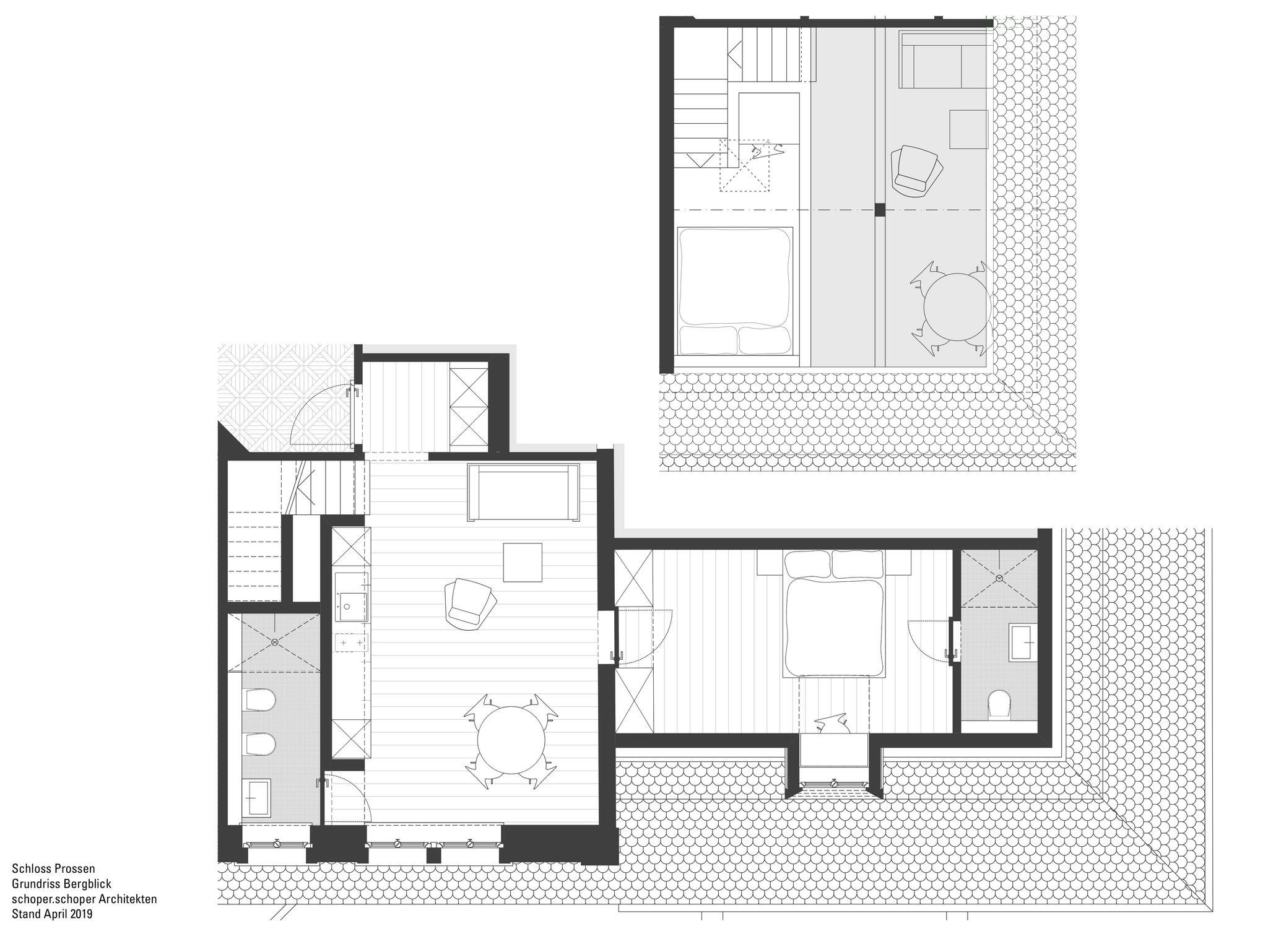 Schloss Prossen, Apartment Bergblick, 2 Schlafräume