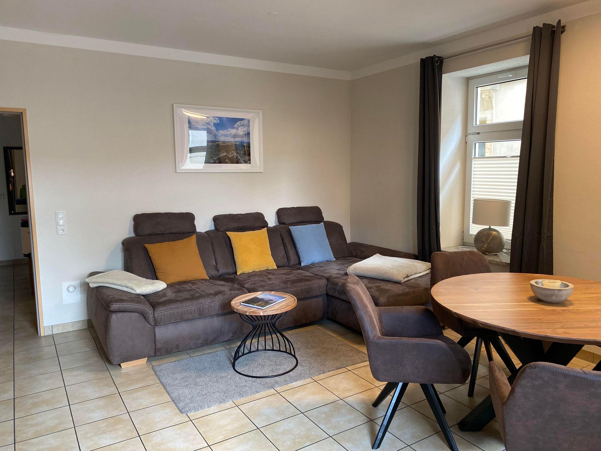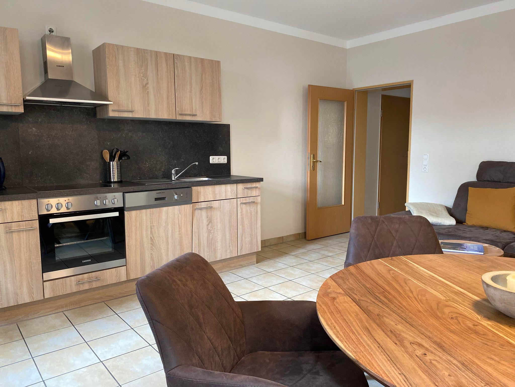 Dieses Apartment verfügt über 2 Schlafzimmer mit je 1 Doppelbett und je 1 Einzelbett für insgesamt 6 Gäste, ein großes Wohn-Esszimmer mit moderner Einbauküche (Cerankochfeld 4-fach, Backofen, Kühlschrank mit Gefrierfach, Kaffeemaschine, Wasserkocher, Toaster, Spülmaschine) und großem Esstisch, Eckcouch, Bad mit DU/WC. Das Apartment befindet sich im EG - Hochparterre.