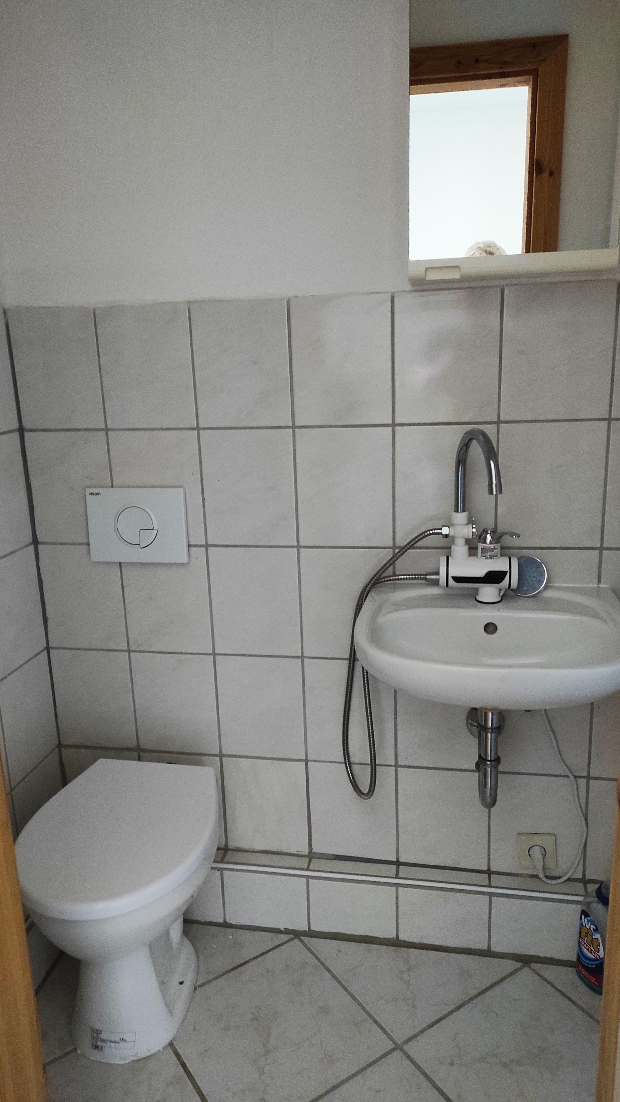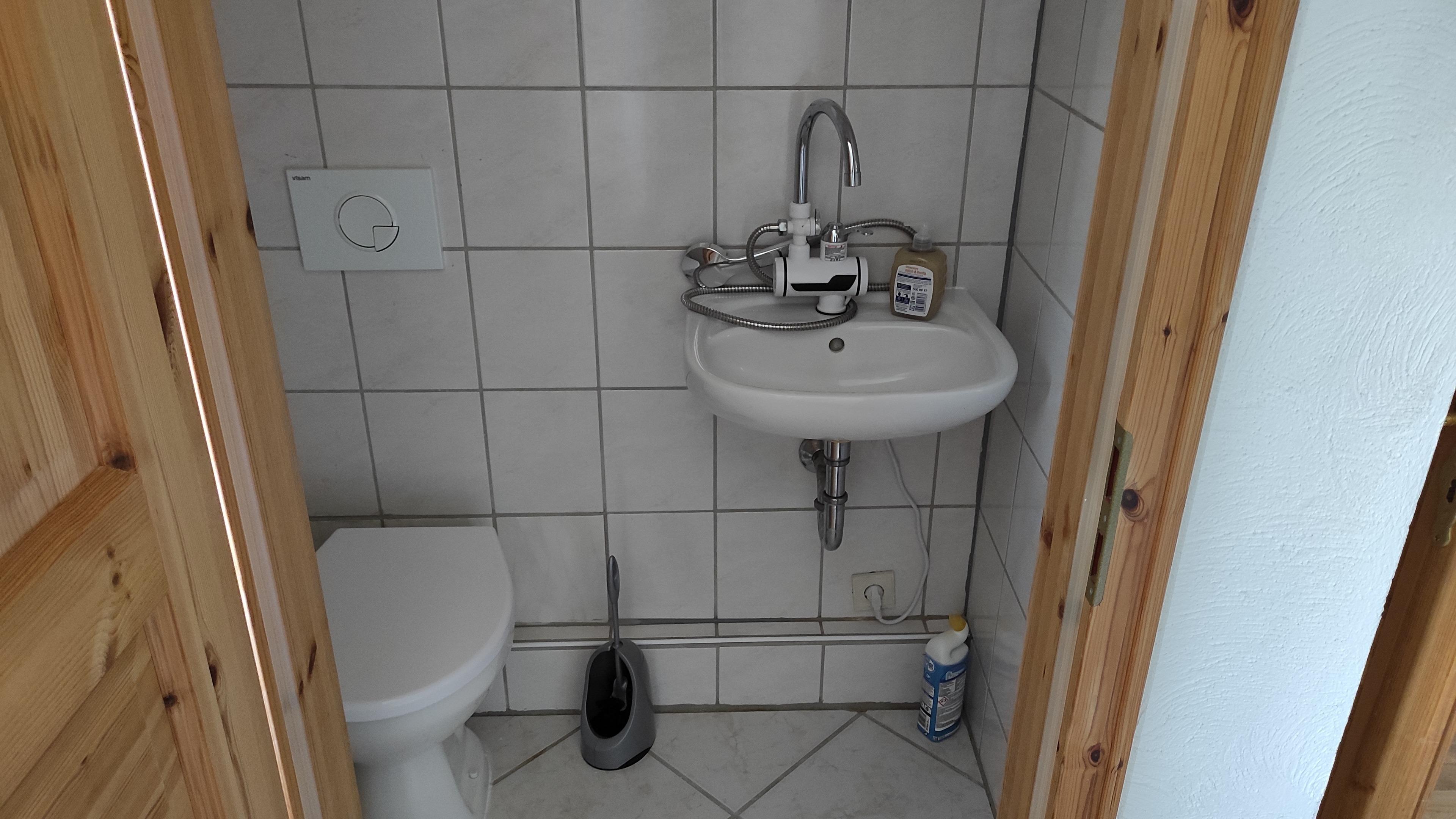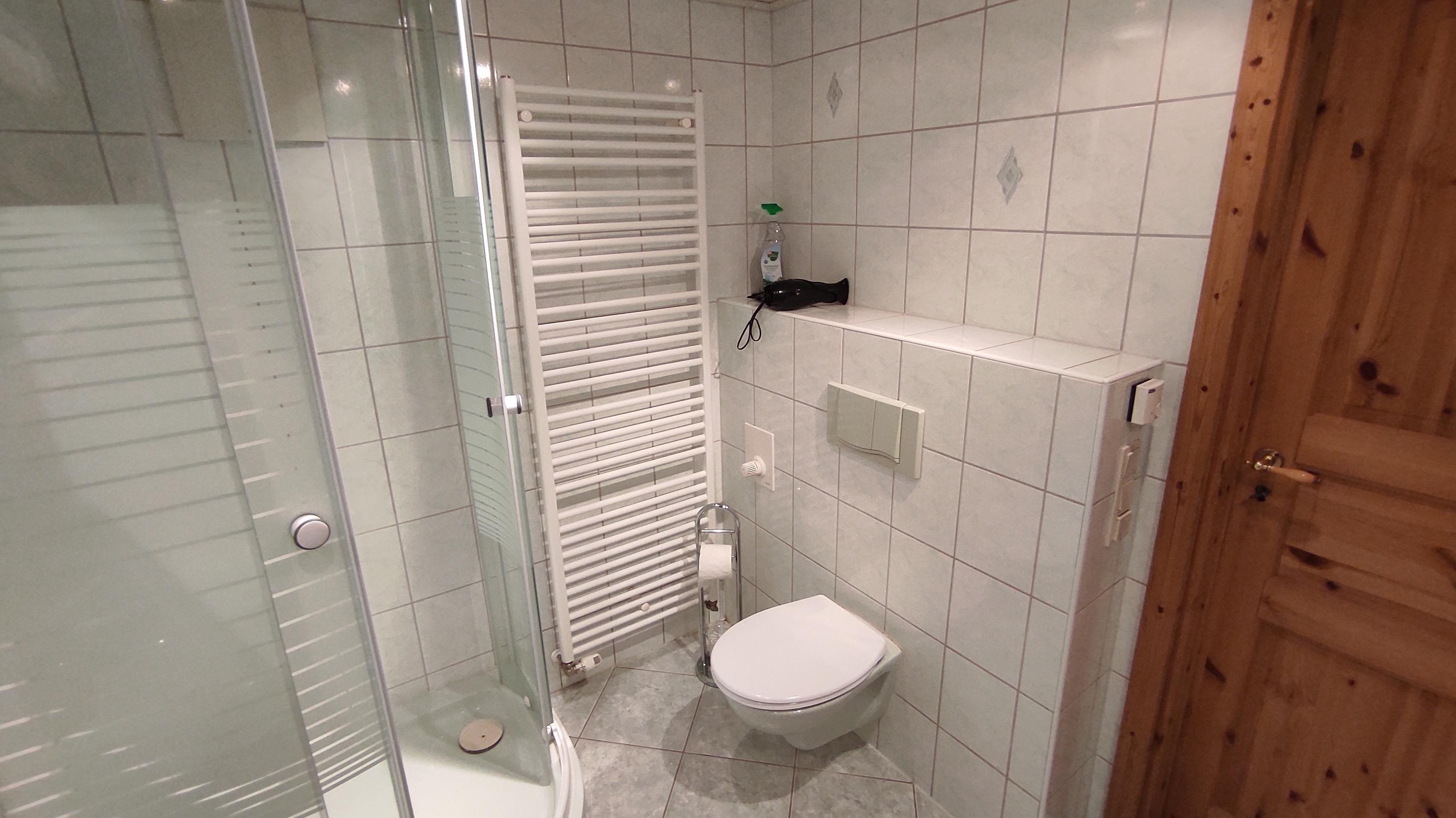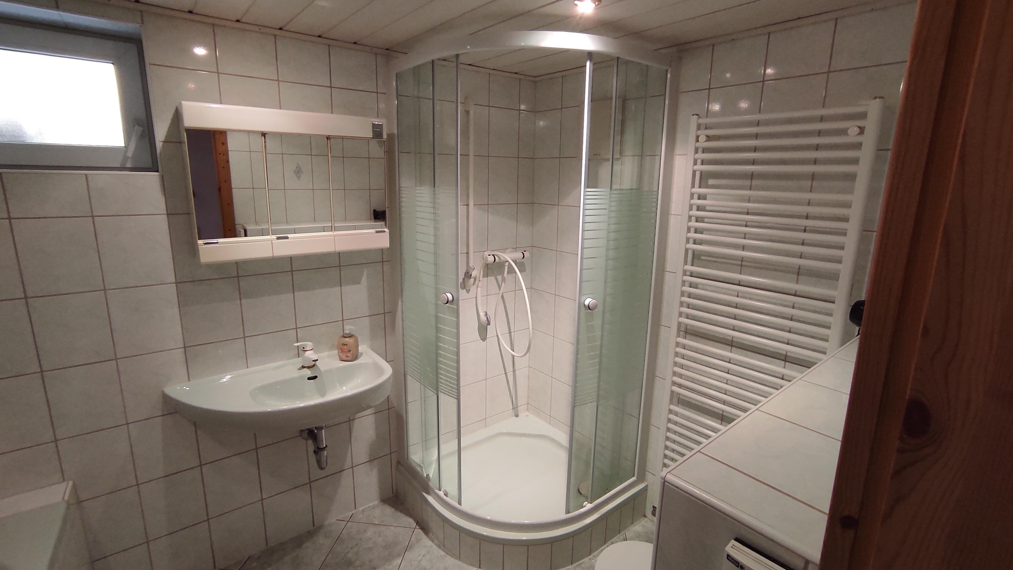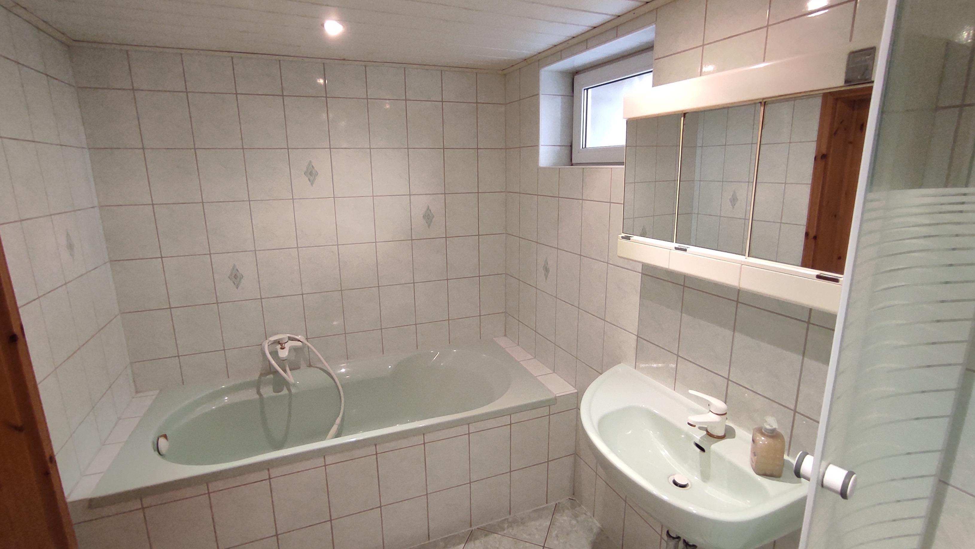 Im Erdgeschoss befindet sich das Bad, welches mit WC, Dusche und Badewanne ausgestattet ist.