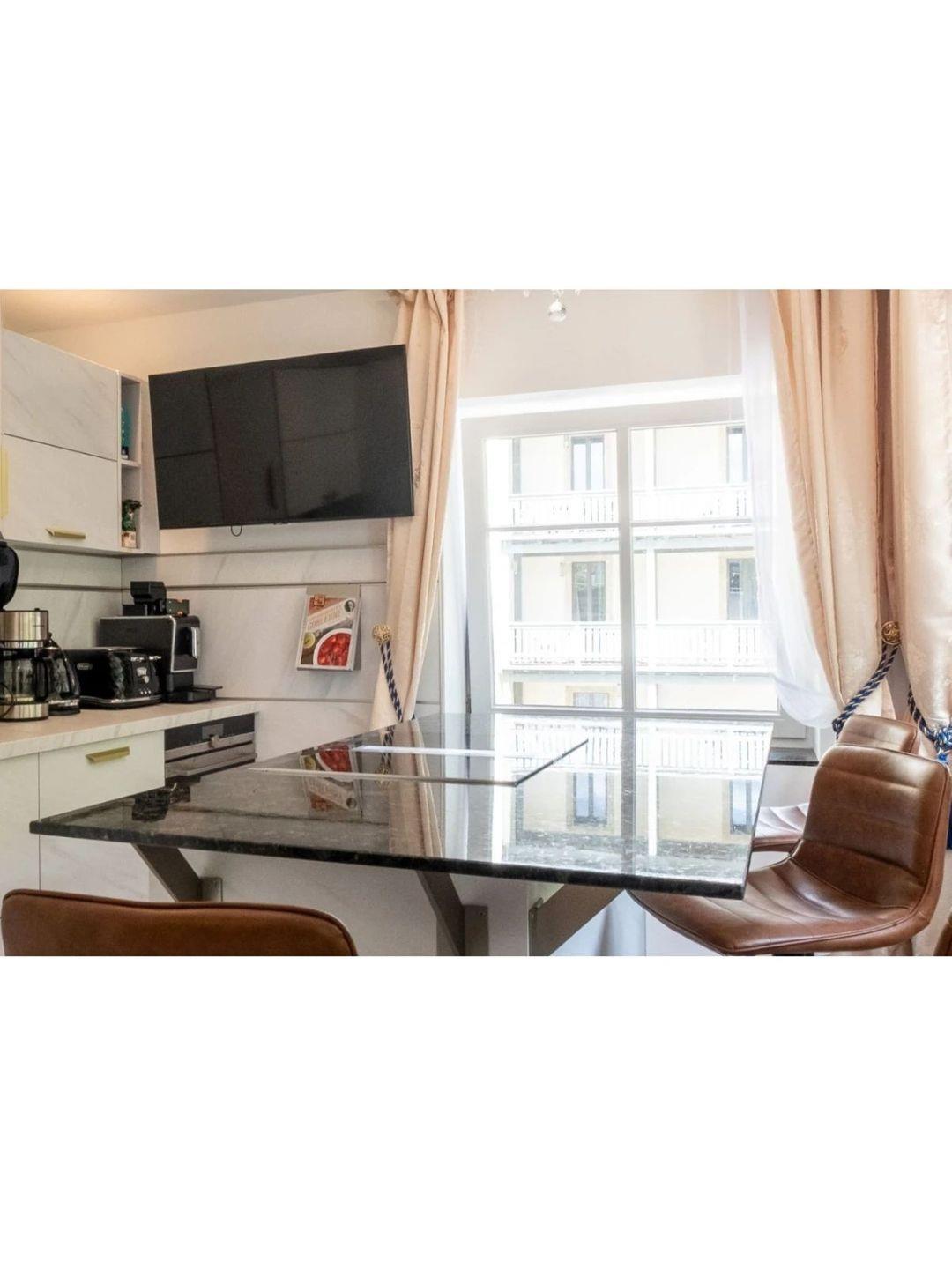 Zu den besonderen Merkmalen von Haus Saxonia zählt die Kombination aus geschlossenen Wohn- und Essbereichen sowie eine vollständig ausgestattete, separate Küche mit Esstisch. Hier finden Sie Backofen, Herd, Kühlschrank mit Gefrierfach, Mikrowelle, Spülmaschine, Kaffeemaschine, Wasserkocher und Toaster – sämtliche Annehmlichkeiten, die eine komfortable Selbstverpflegung ermöglichen. Die gemütliche Sofaecke im Wohnzimmer lädt zum Entspannen ein, während das separate Esszimmer Platz für gemeinsame Mahlzeiten bietet. Ergänzend sorgen fünf Fernseher für abwechslungsreiche Unterhaltungsmöglichkeiten in verschiedenen Räumen.