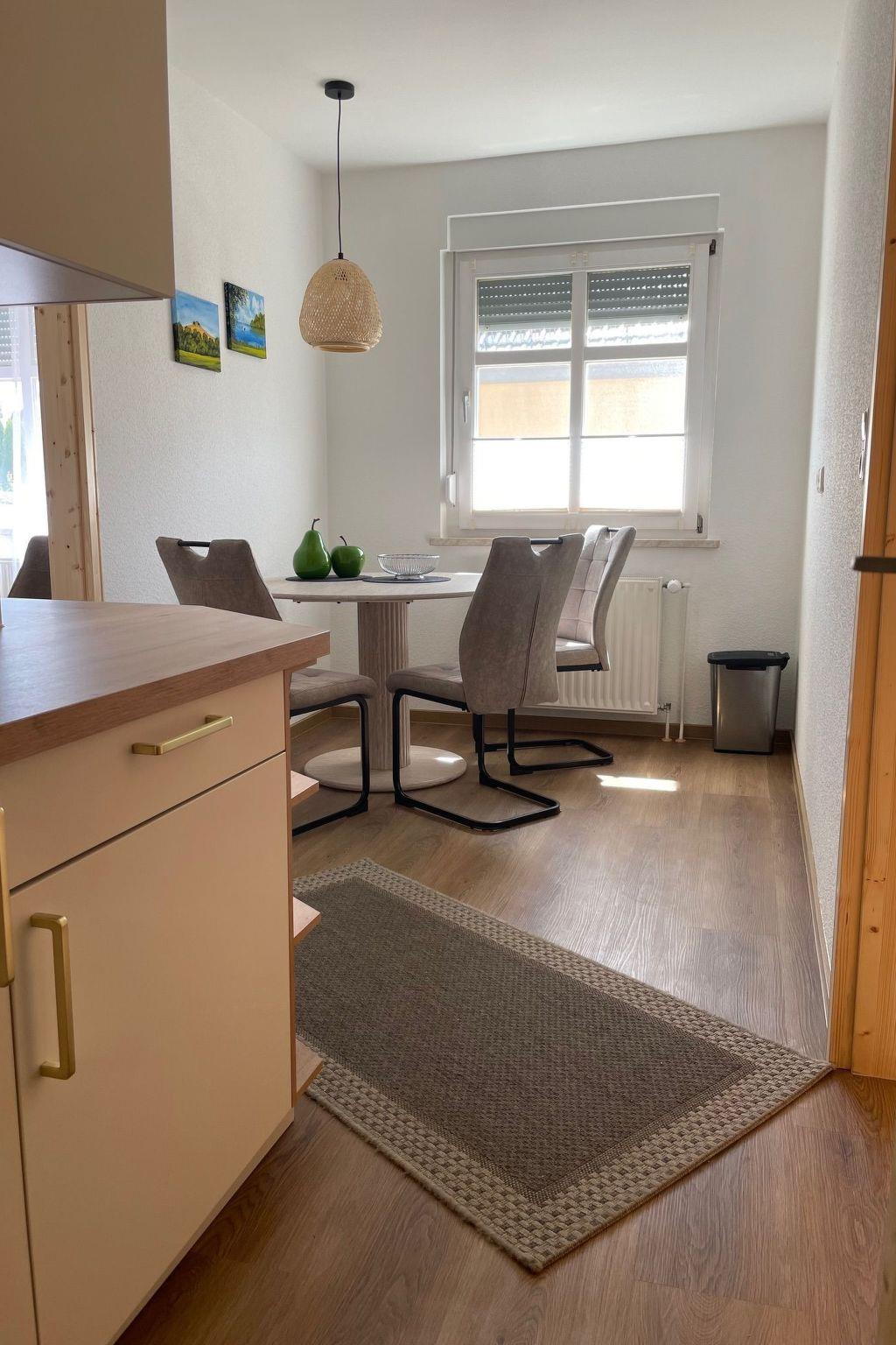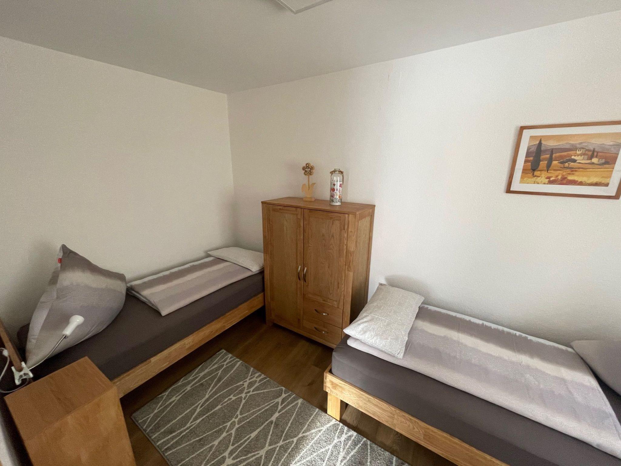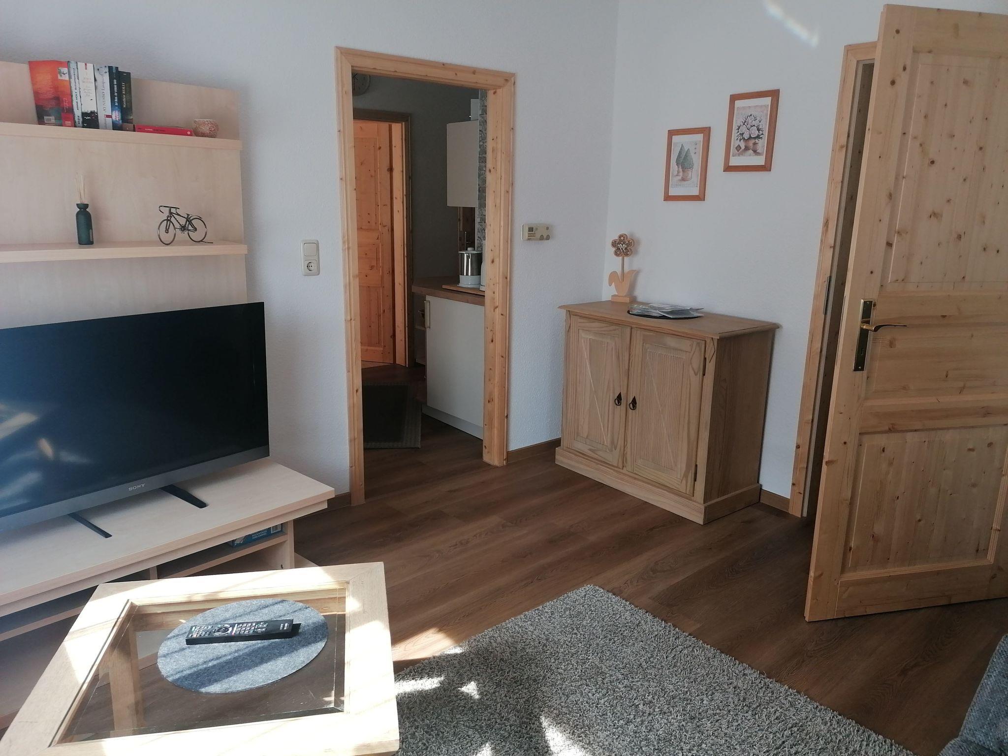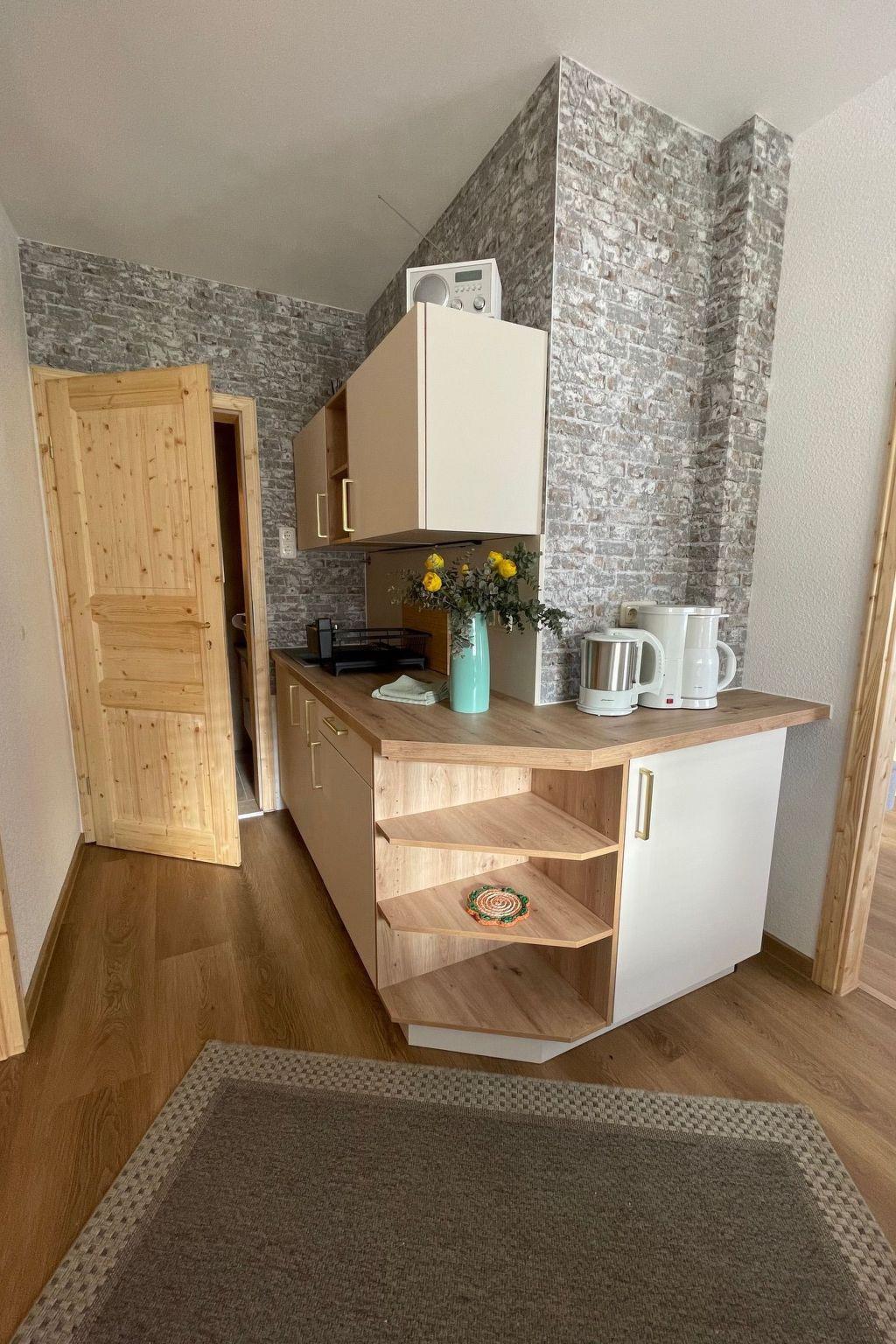 The flat is functionally and thoughtfully furnished to make your stay as pleasant as possible. In the living area, the sofa bed offers the option of an extra bed. The bedroom with two single beds can be darkened, which increases sleeping comfort. The flat has a bathroom with rain shower and underfloor heating, a separate toilet and a small, fine kitchen. Here you will find a two-ring induction hob, fridge, microwave, filter coffee machine, egg boiler and kettle - everything you need to prepare small meals. All rooms are equipped with blinds and insect screens.