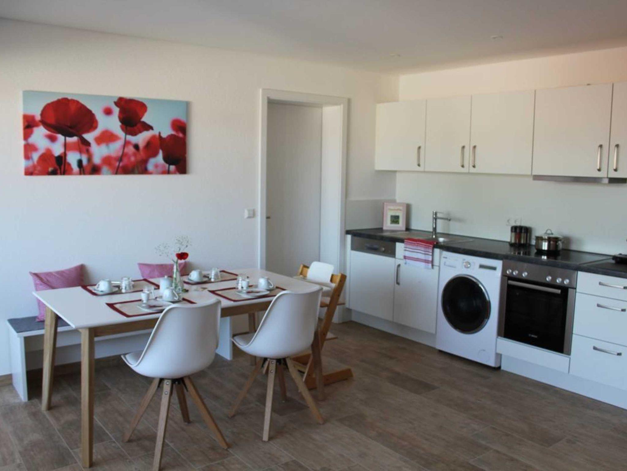 helle, neue, moderne, großzügige, nichtraucher Ferienwohnungen, Fußbodenheizung, Jalousien, Fensterläden, mit eingerichteter Küche, Waschmaschine mit integriertem Trockner, Aufzug, pro Wohnung jeweils 4 Betten in 2 Schlafzimmern, auch Kinderbett für Baby auf Anfrage