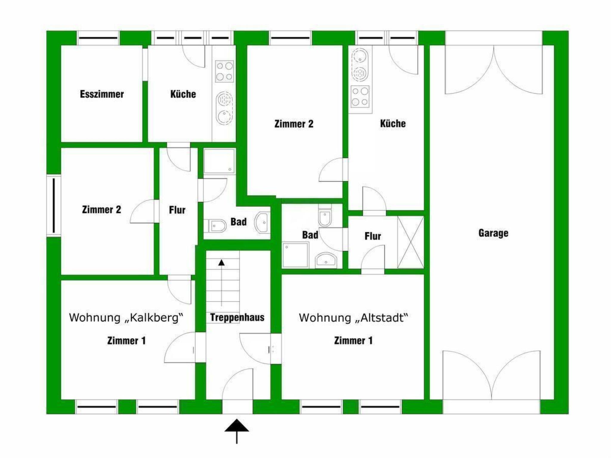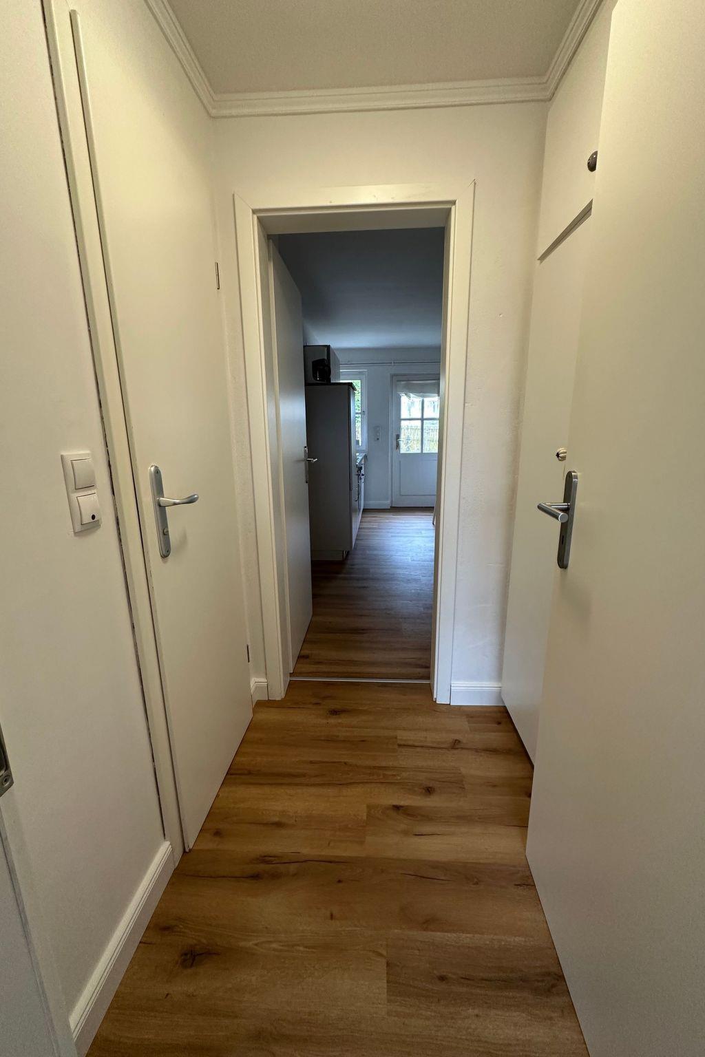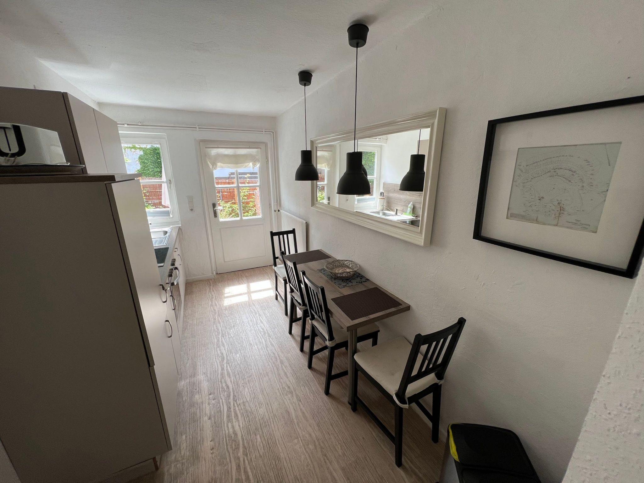 This holiday flat is located on the ground floor of the old town house. It has a spacious living room with sleeping facilities, a bedroom, a separate open-plan kitchen and a shower room. After entering the house, you will find the flat door immediately on the right-hand side. With one step you enter the spacious living room. The flat was renovated in 2015 and offers modern furnishings with attractive accessories. Thanks to its location in an old building with the typical high ceilings, the interior feels very cosy and spacious. After a day out, you can relax on the sofa in the living room. There is also an additional sofa bed in this room, which lets in plenty of natural light through two large windows. A wall-mounted flat-screen TV with satellite TV and TV-USB connection provides entertainment in the evening. The bedroom is furnished with a spacious double bed (180 cm x 200 cm) with two bedside tables on both sides and reading lamps. The kitchen equipment allows you to comfortably cater for yourself. The equipment includes a cooker with four-zone hob and oven, a sink, a fridge and even a dishwasher. There is also a kettle and coffee machine. There is a long dining table for four people in the kitchen. Alternatively, if the weather is good, you can quickly step through the outside door onto the terrace and enjoy a meal outdoors. The bathroom is equipped with a walk-in shower with shower curtain, an undermounted washbasin, a towel dryer and a WC. The modern facilities also include free Internet access via WLAN. This means you can also be reached on holiday, fine-tune your holiday plans on site or send your holiday greetings with photos directly to your friends and acquaintances.