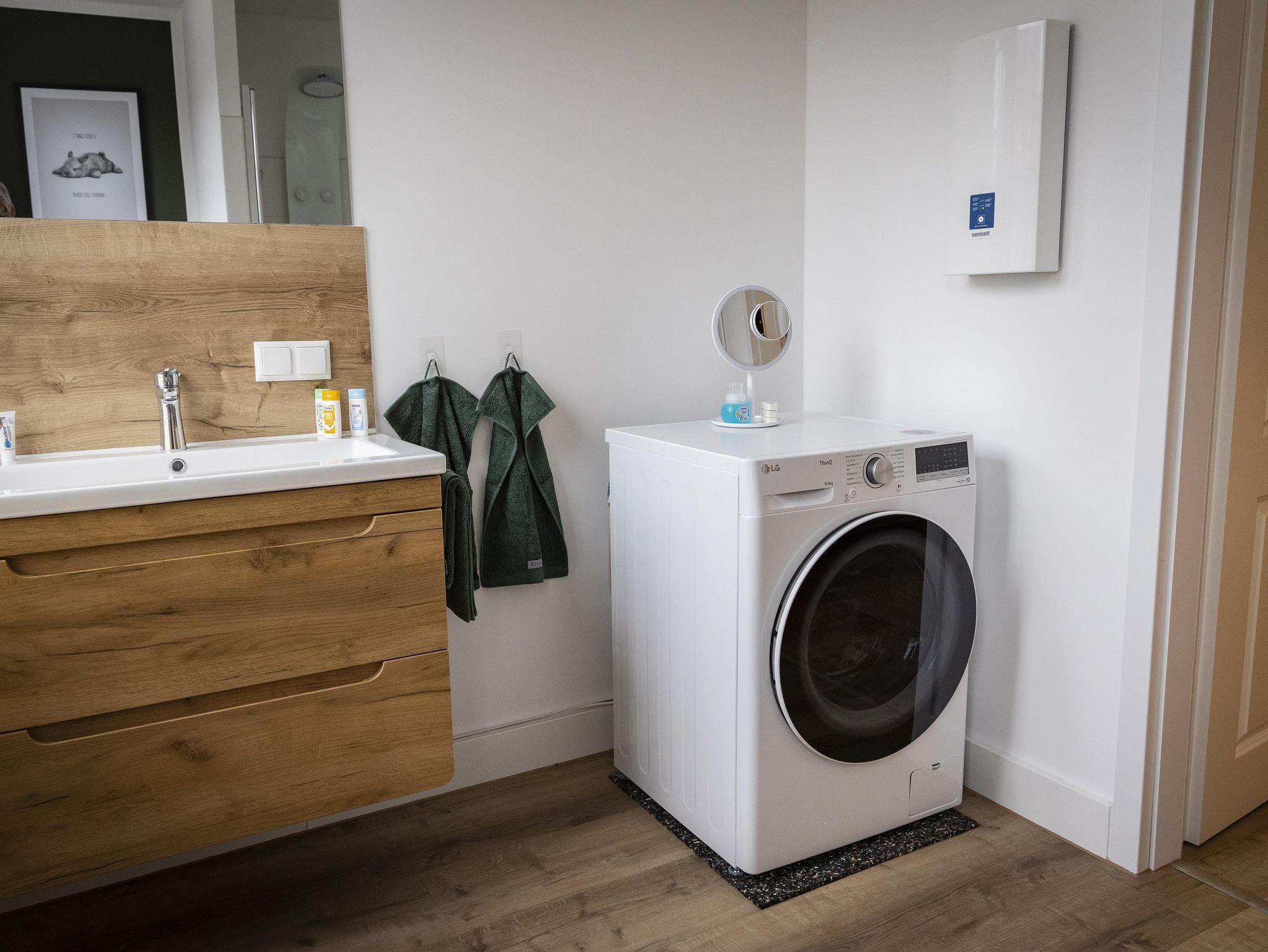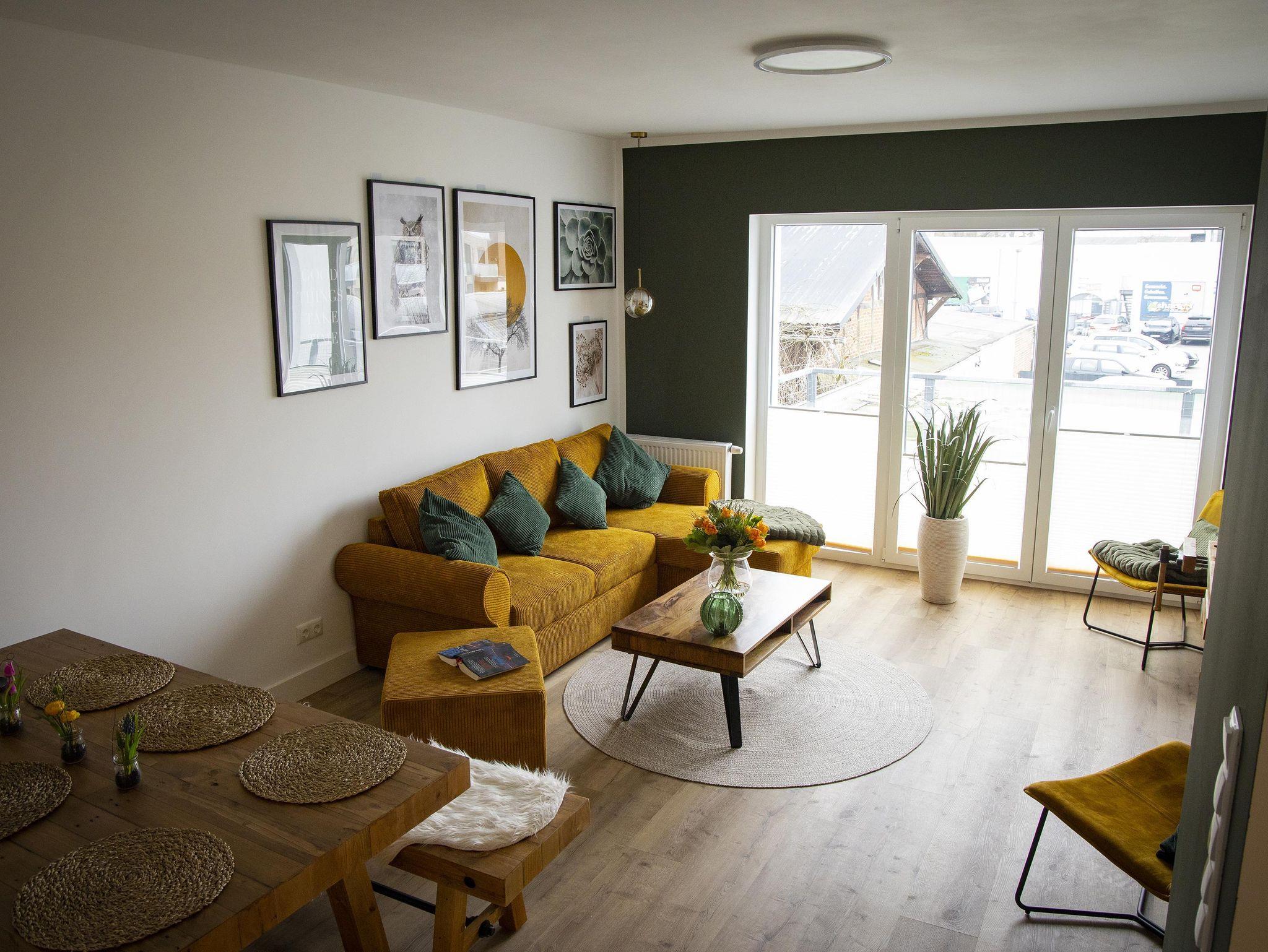 Die Ausstattung ist grundsätzlich für sechs Personen vorhanden. Für eine erwachsene Person oder 2 Kinder kann die moderne Schlafcouch mit einer Liegefläche von 2 m x 1,4 m im Wohnzimmer genutzt werden. Zwei Personen schlafen im Queen Size Bett (160cm) im Schlafzimmer.