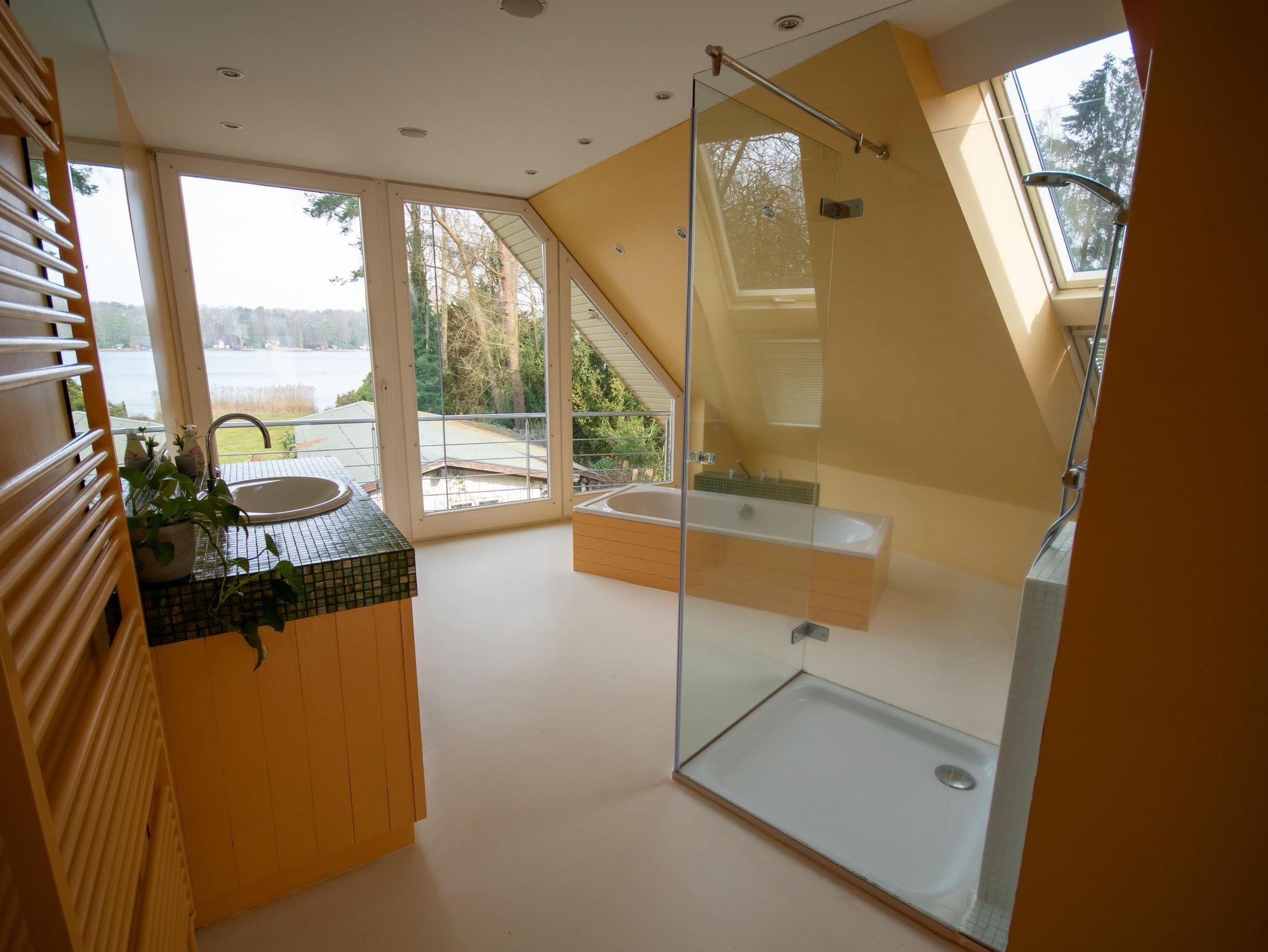 Haus am See, Ferienhaus, Dusche und Badewanne, Seeblick