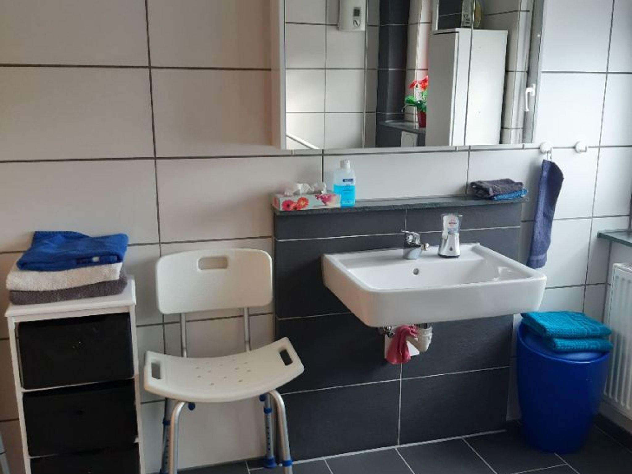 Komplett eingerichtete Küche mit Kühl-Gefrierschrank,barrierefreies Bad, Schlafzimmer, Wohnzimmer mit SAT-TV , Schlafcouch und TV- Sessel mit Aufstehhilfe.