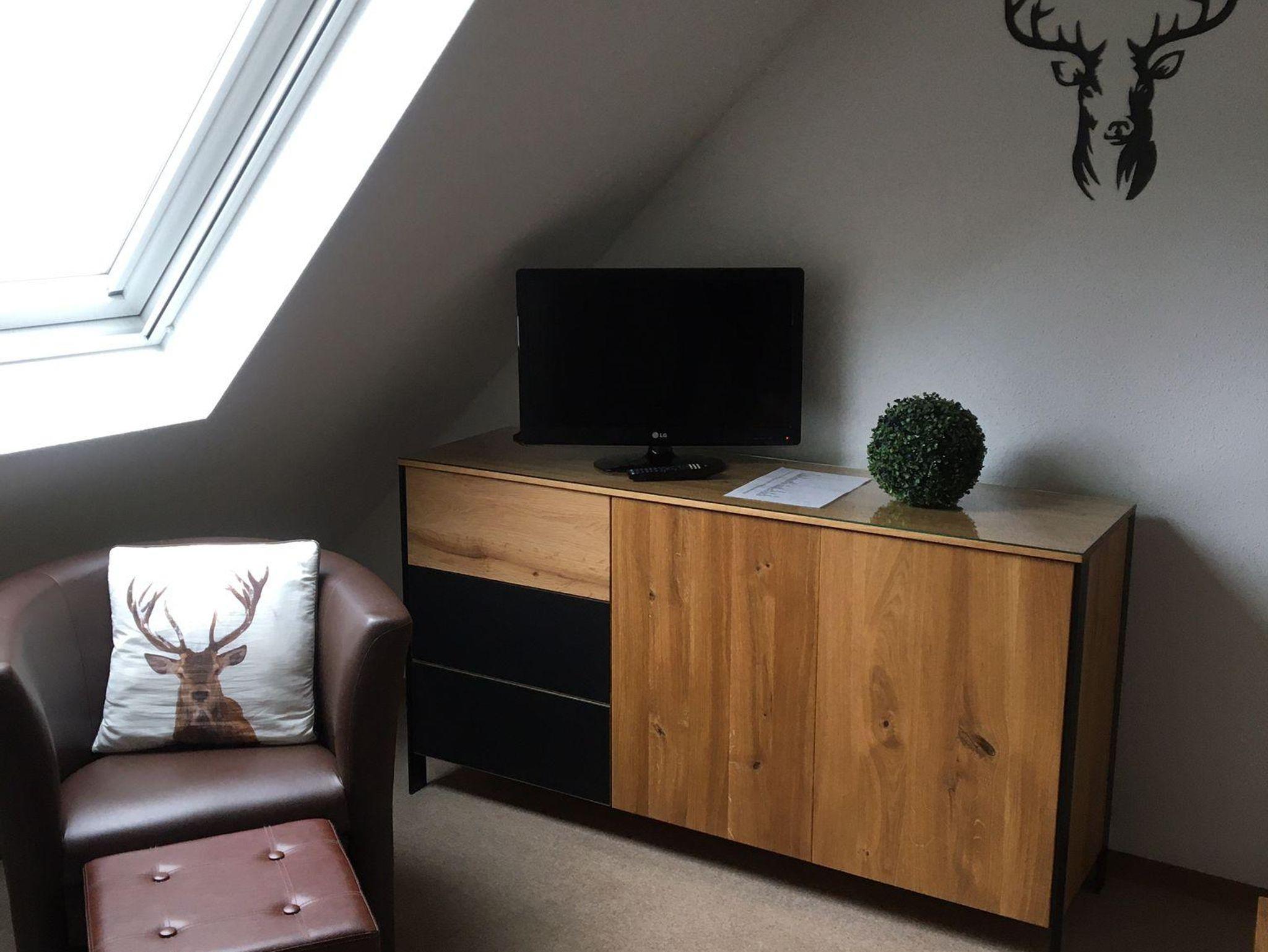 eingerichtet. Es besteht aus einem Wohn/Schlafzimmer mit TV und Radio