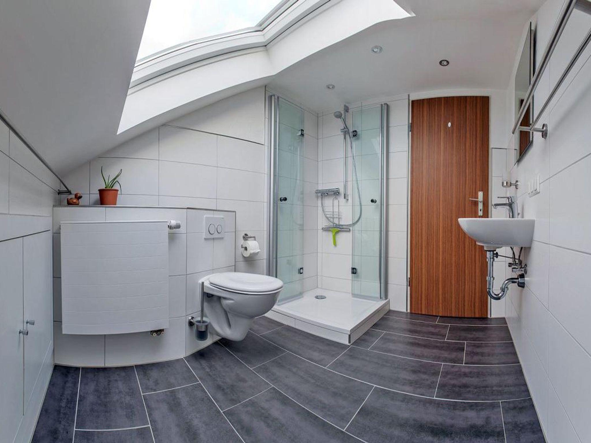 Sie befindet sich im Dachgeschoss und bietet 45m² Platz zum Entspannen und Ausruhen.