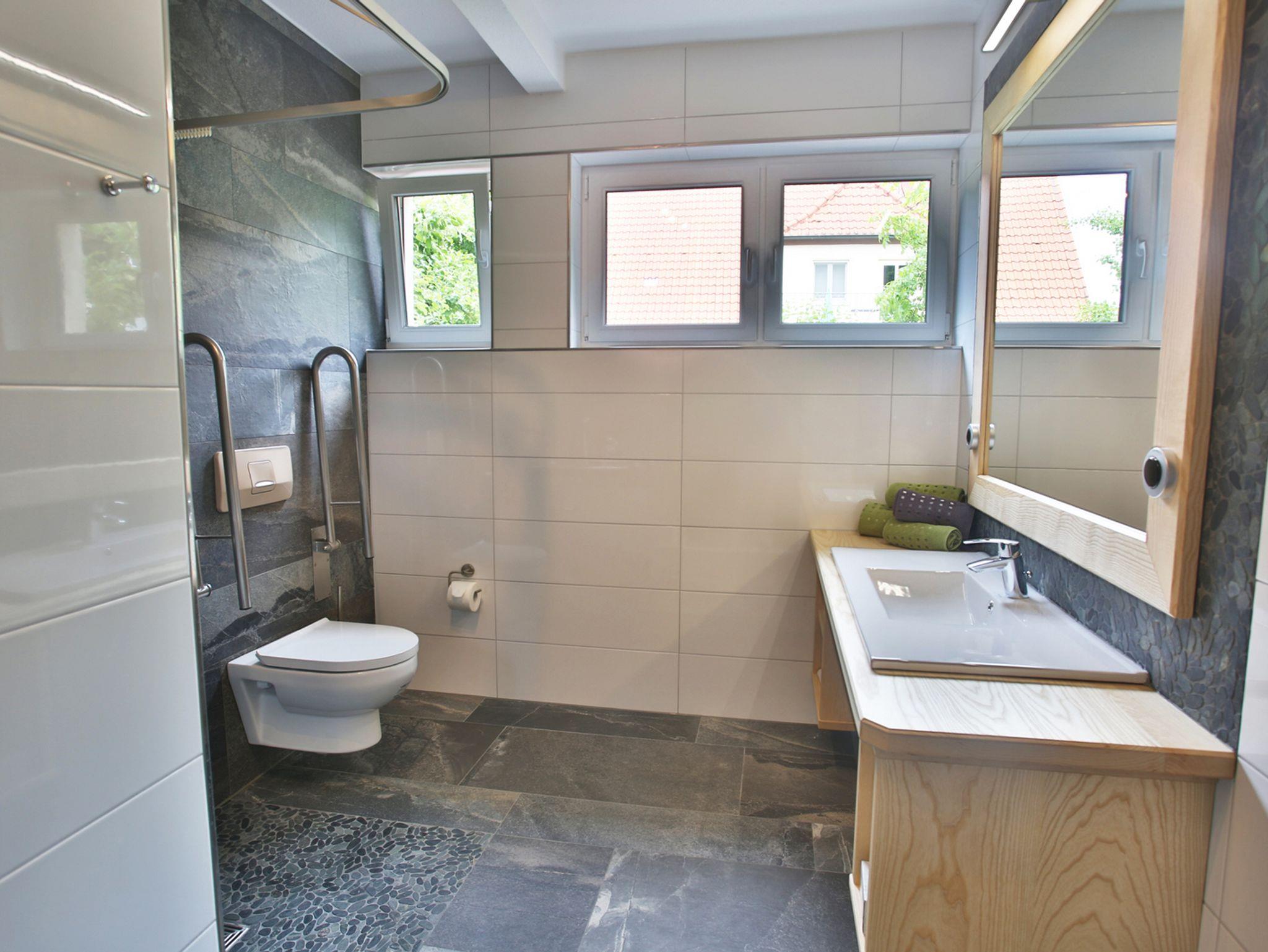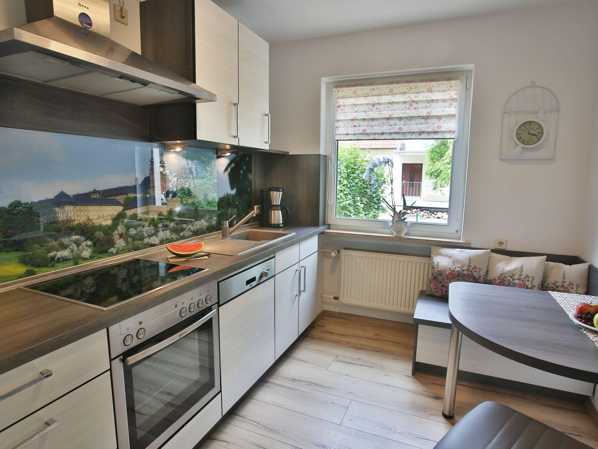 Unsere Ferienwohnung ROSE verfügt über einen barrierefreien Eingang und ein barrierefreies Bad. Wir haben Sie renoviert für Rollstuhl-Fahrer. Die seperate Küche ist mit Elektroherd, Mikrowelle, Spülmaschine, Kühlschrank, Wasserkocher und Kaffeemaschine ausgestattet. Das Badezimmer ist mit Dusche und WC ausgestattet. Das separate Schlafzimmer liegt an der Gartenseite und besitzt ein Doppelbett. Von der Terasse aus können Sie den Blick auf den Staffelberg genießen. Im Sommer spenden unsere großen Bäume ein angenehmes Klima im Garten und Haus.