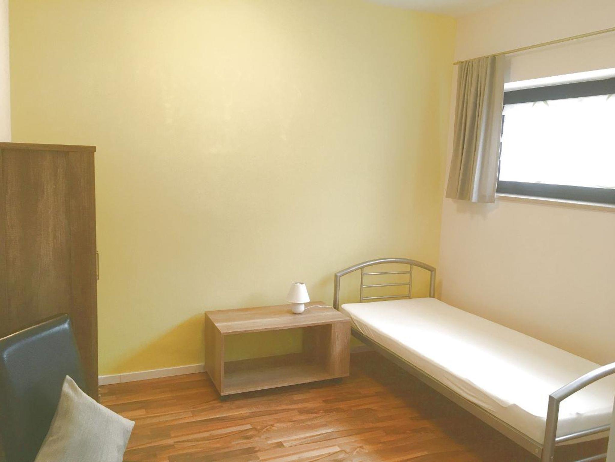 Einzelbett. Ein besonderes Merkmal dieser Wohnung ist die Barrierefreiheit mit