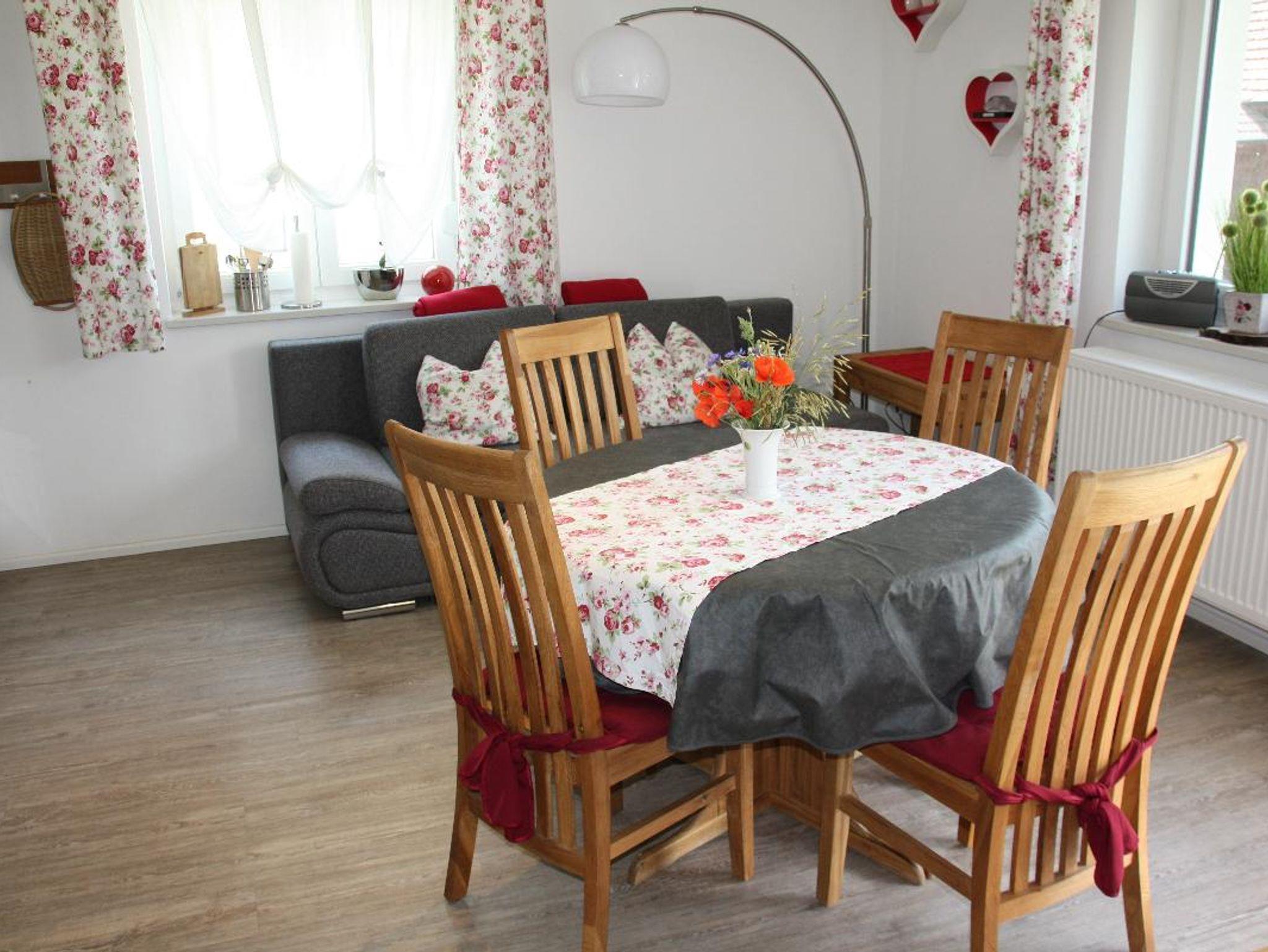 Alle Wohnungen verfügen über SAT- TV, Radio, Internetanschluss und W-Lan. Bettwäsche und Handtücher werden gestellt. In den Wohnungen befindet sich jeweils eine komplett eingerichtete Wohnküche (Wohnungen Achim und Luisa mit Geschirrspüler), ein Schlafzimmer mit Doppelbett und ein Badezimmer mit Fön,Dusche und WC (die Wohnungen Christine und Theresa sind zusätzlich mit Wanne ausgestattet und verfügen über en Zustellbett im Schlafzimmer). In allen Wohnungen ist im Wohnbereich eine große Schlafcouch (ausgeklappt 210x150 cm) als Schlafmöglichkeit.