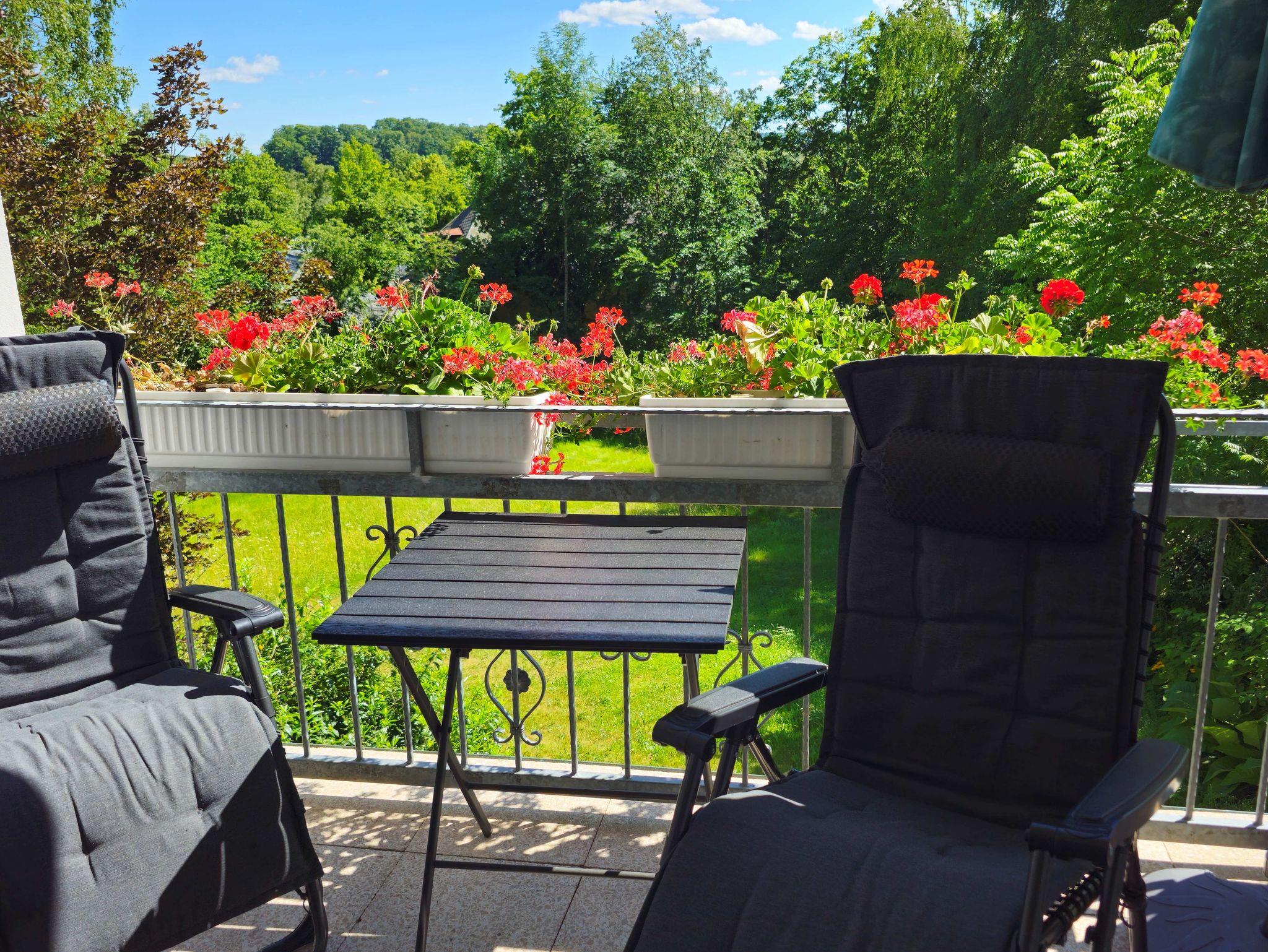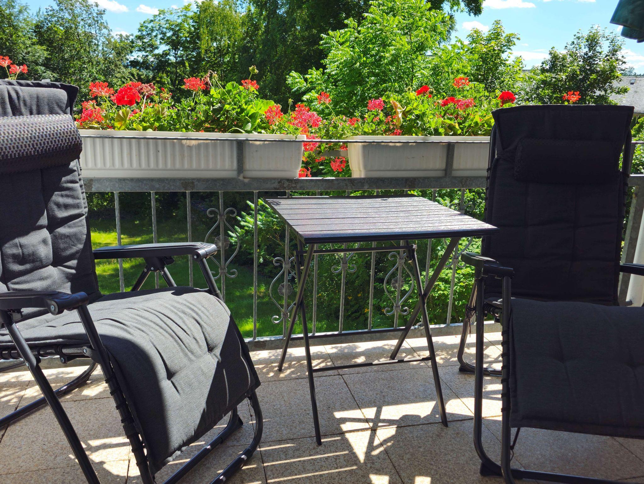 Die geräumige Loggia ist nach Süden ausgerichtet mit Blick ins Grüne.