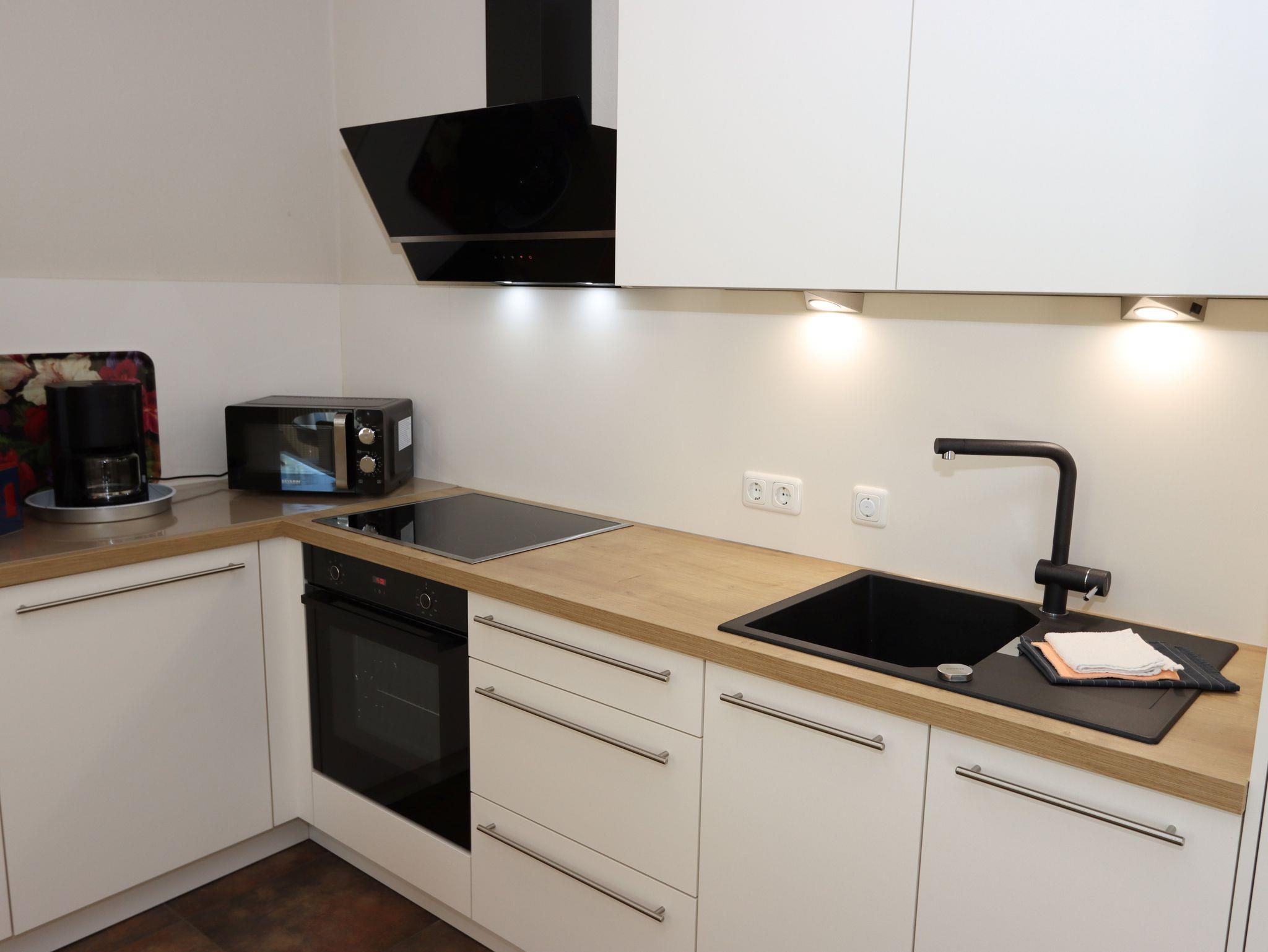 Die Küche mit allen notwendigen Elektrogeräten ausgestattet (Geschirrspüler, E-Herd, Mikrowelle, Kaffeemaschine usw.). Eine komplette Wäscheausstattung ist im Preis inbegriffen, ebenso die Endreinigung.