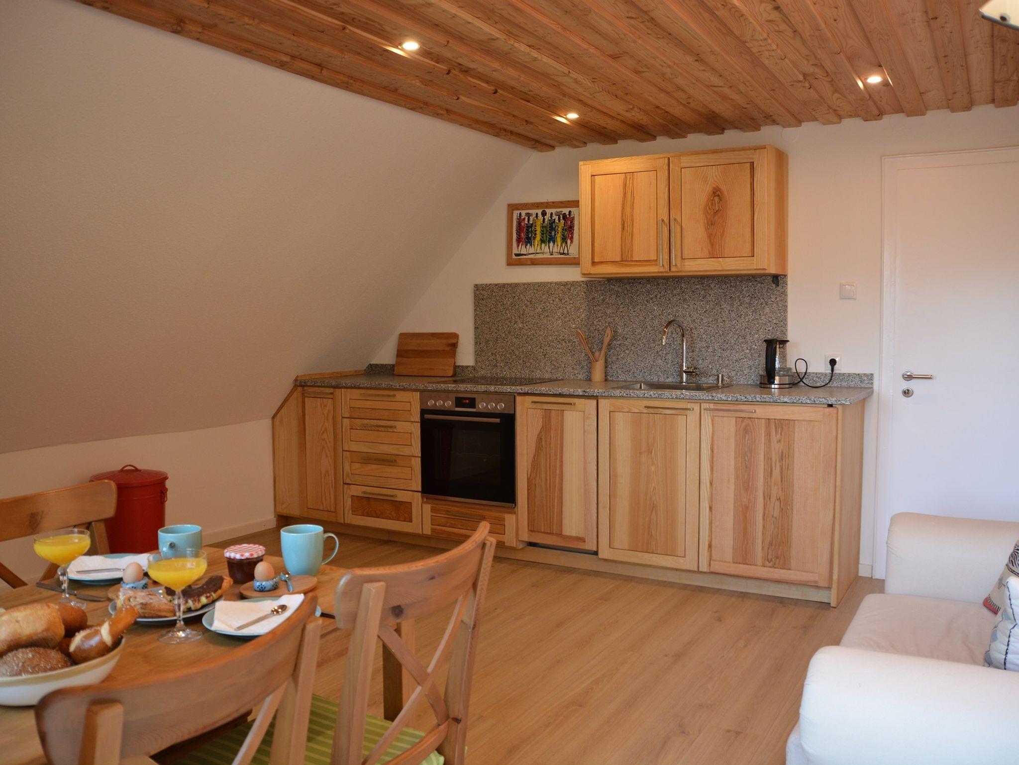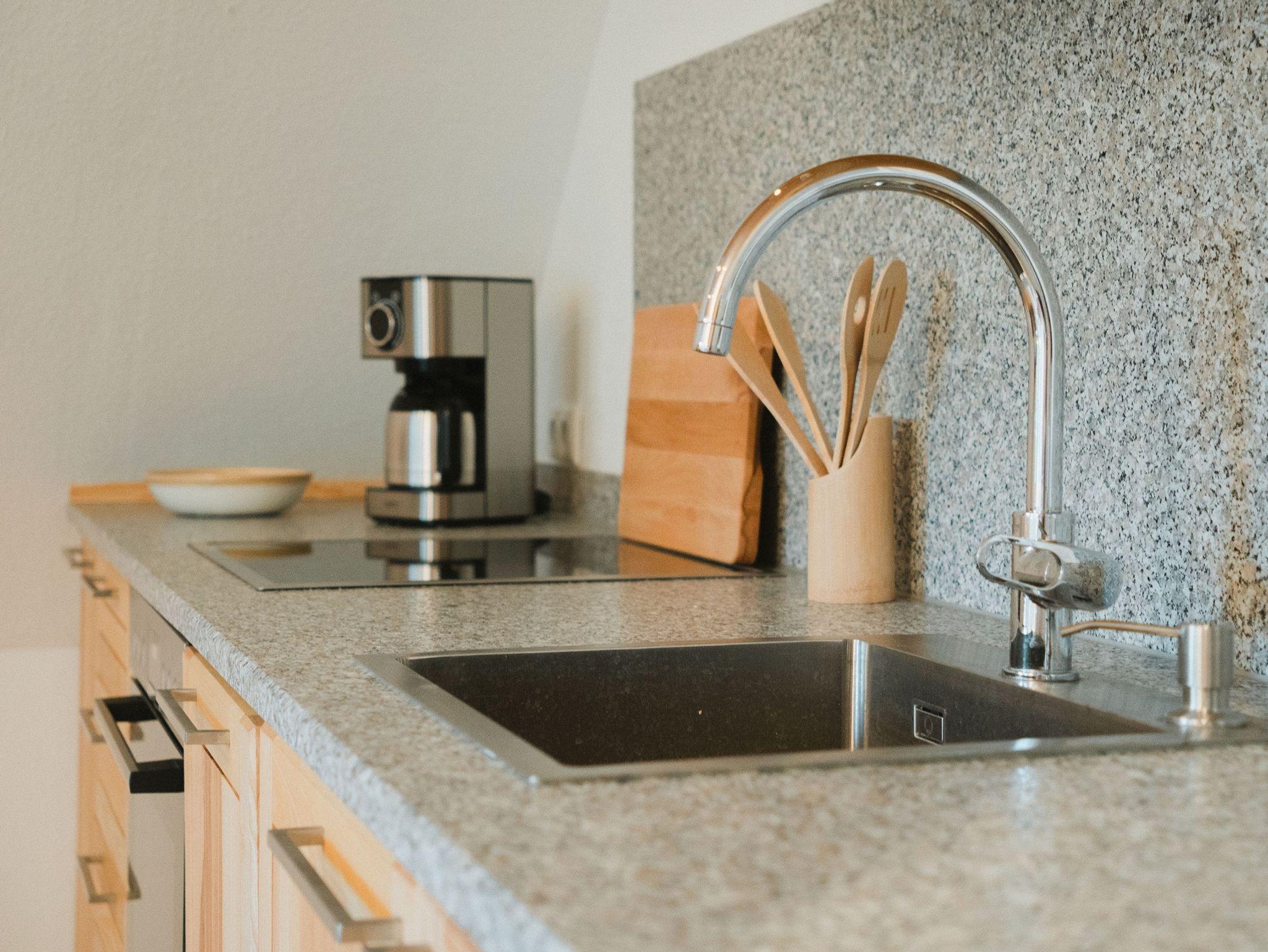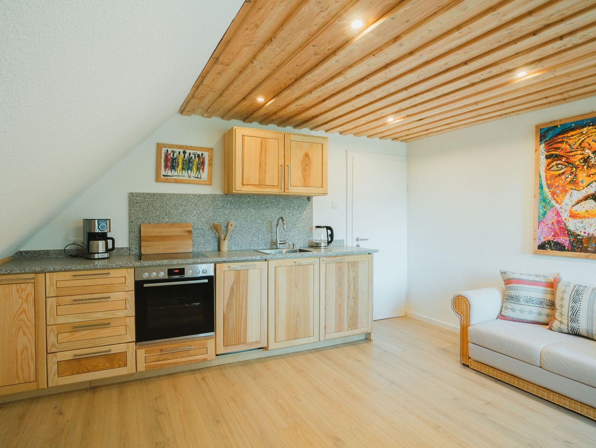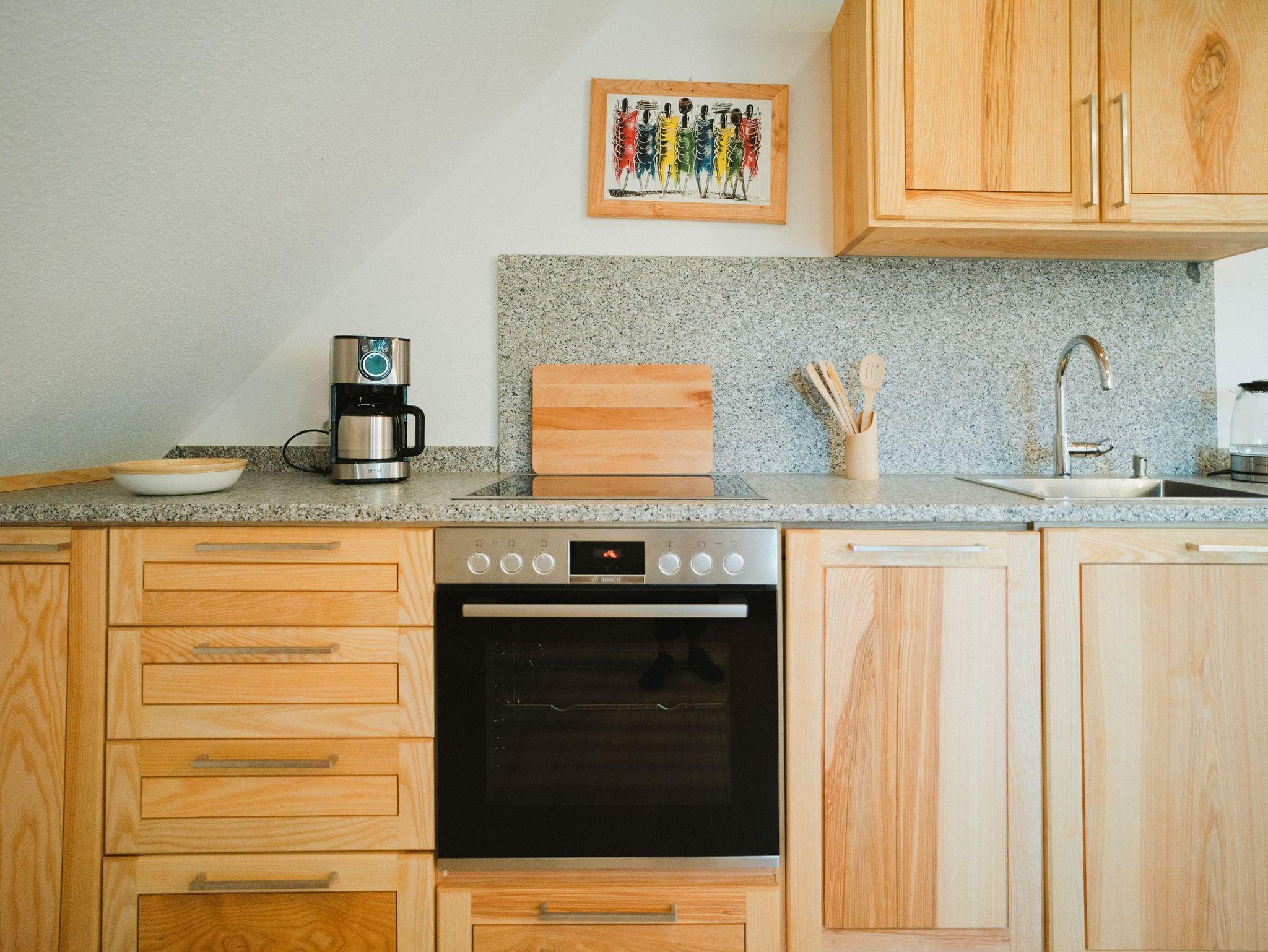 Von der Küche haben Sie einen direkten Zugang zum Balkon und können die unmittelbare Natur genießen.
