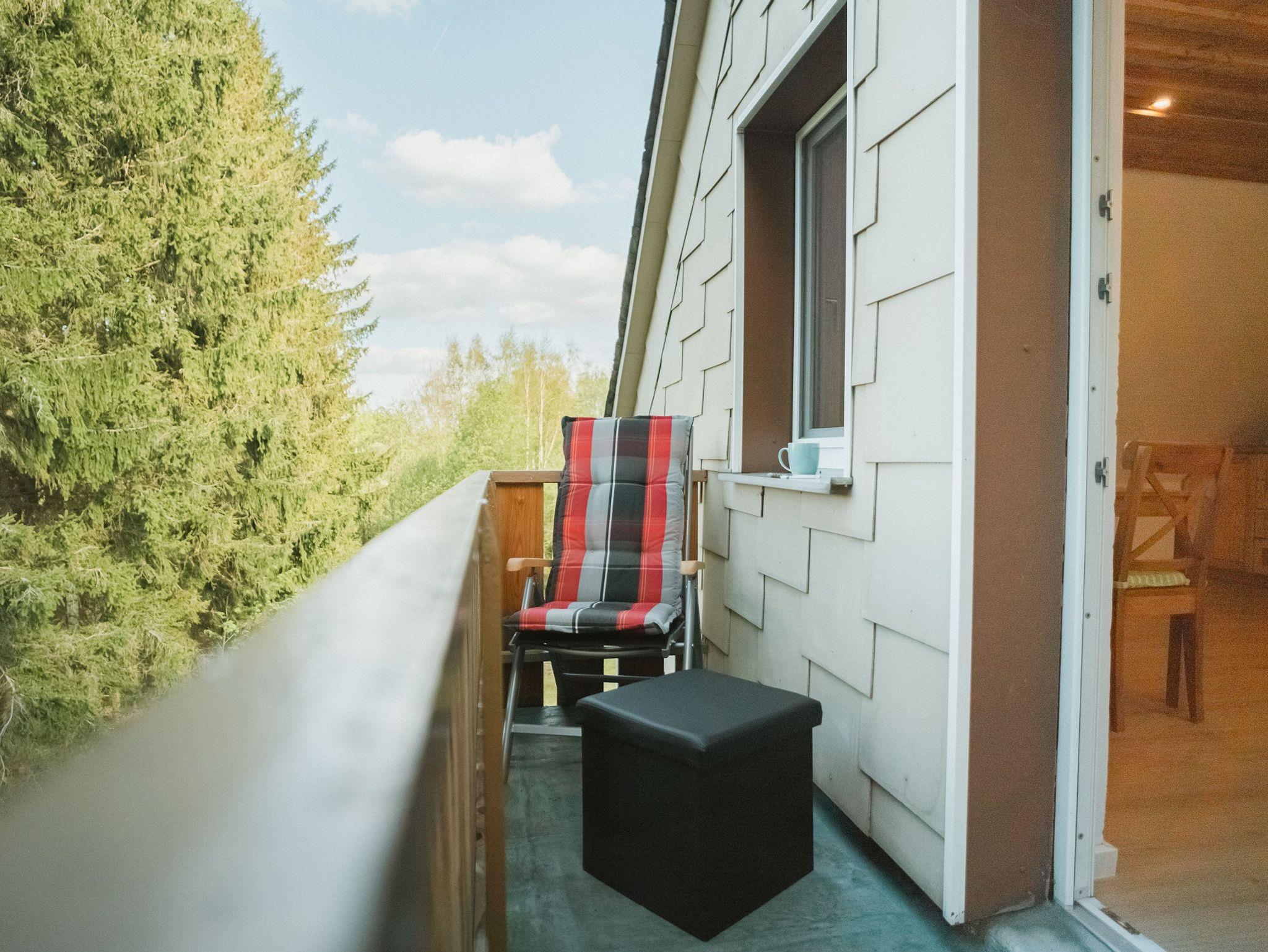 Von der Wohnküche gelangt man direkt auf den kleinen Balkon, der sich inmitten der Natur befindet.
