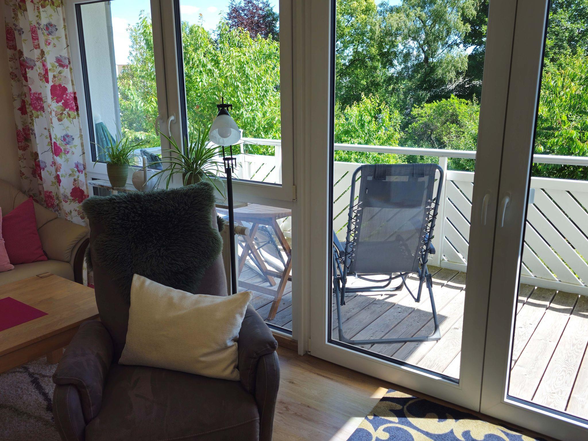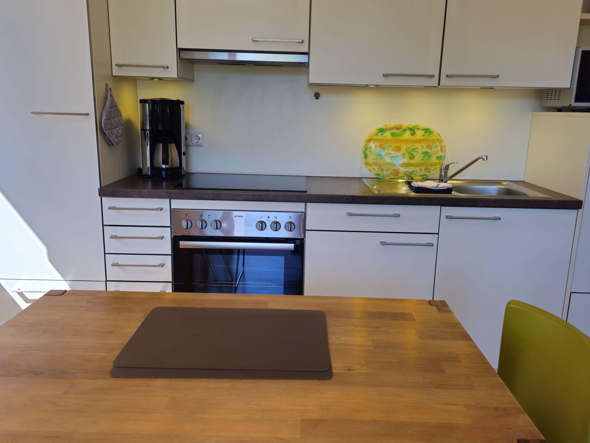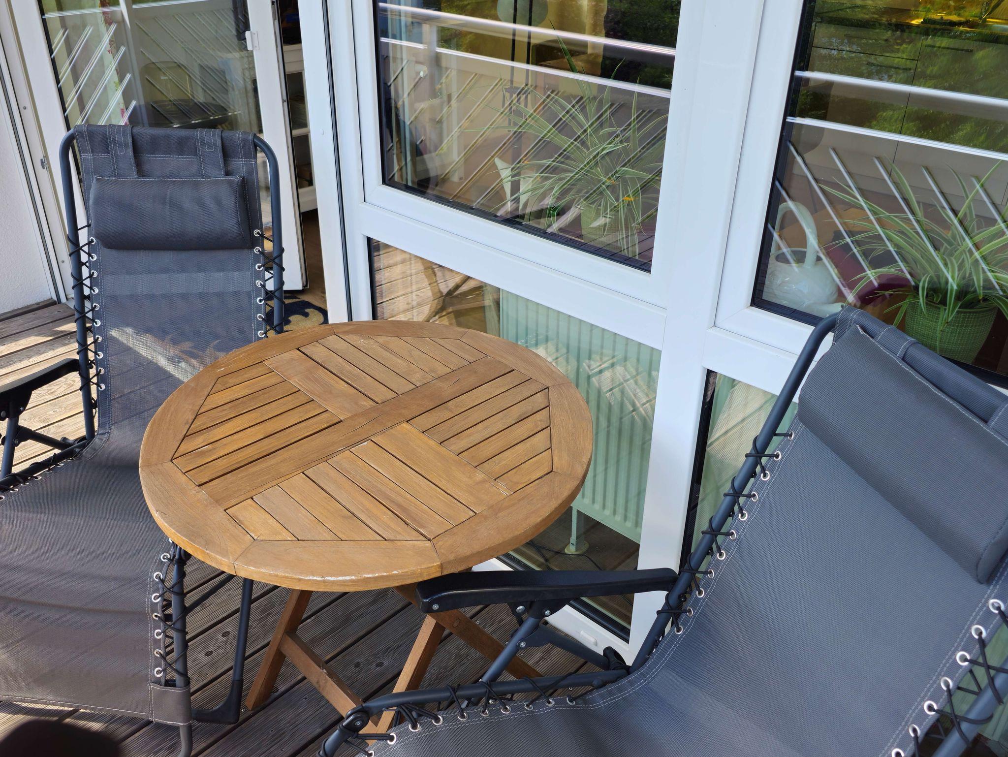 Die Wohnung bietet eine elegante Möblierung, TV und kostenloses WLAN. Der große Balkon ist nach Süden ausgerichtet mit Blick ins Grüne.