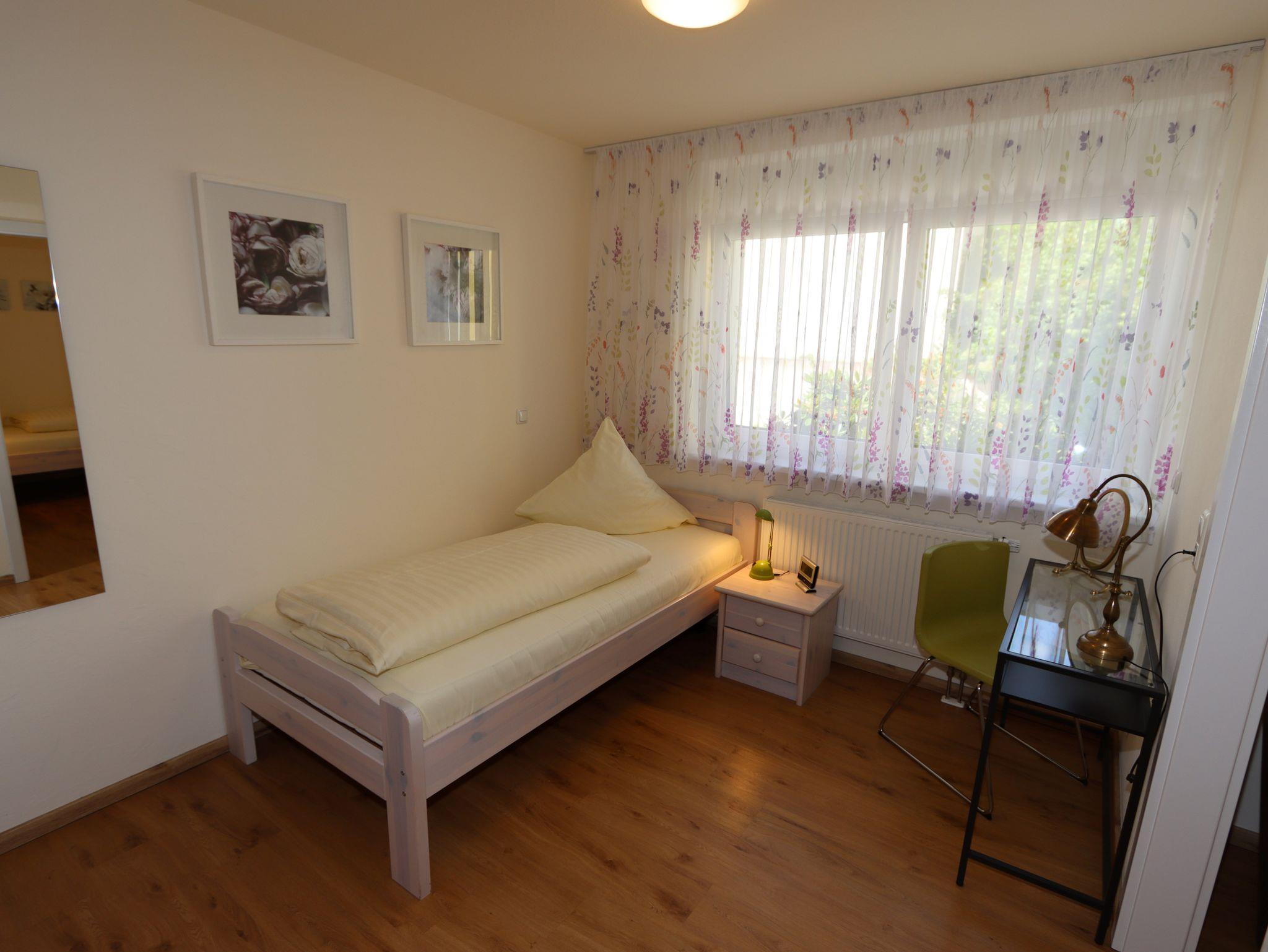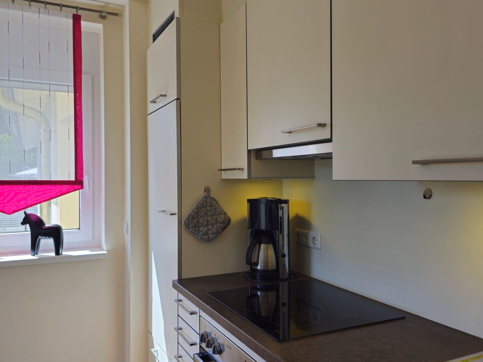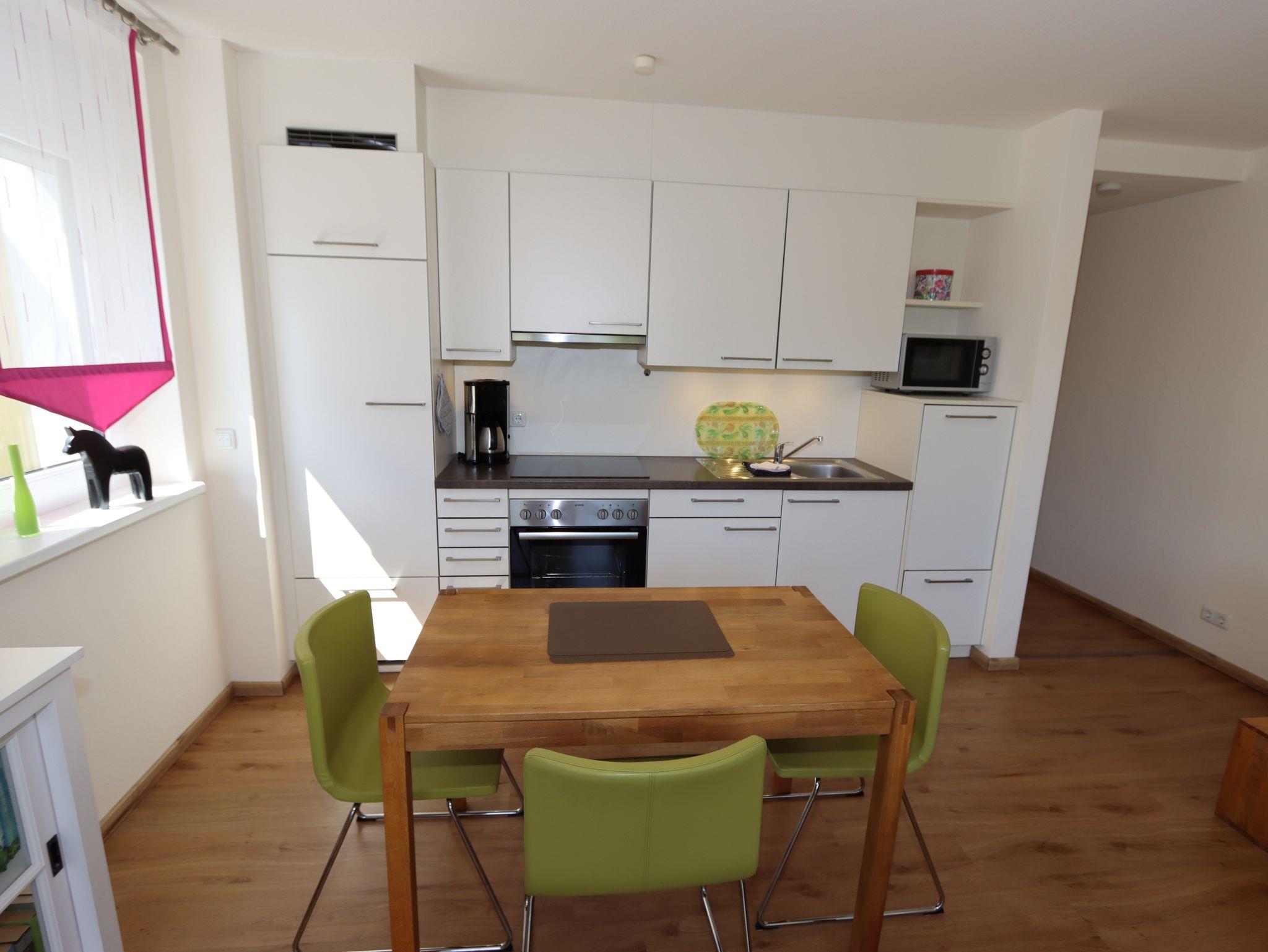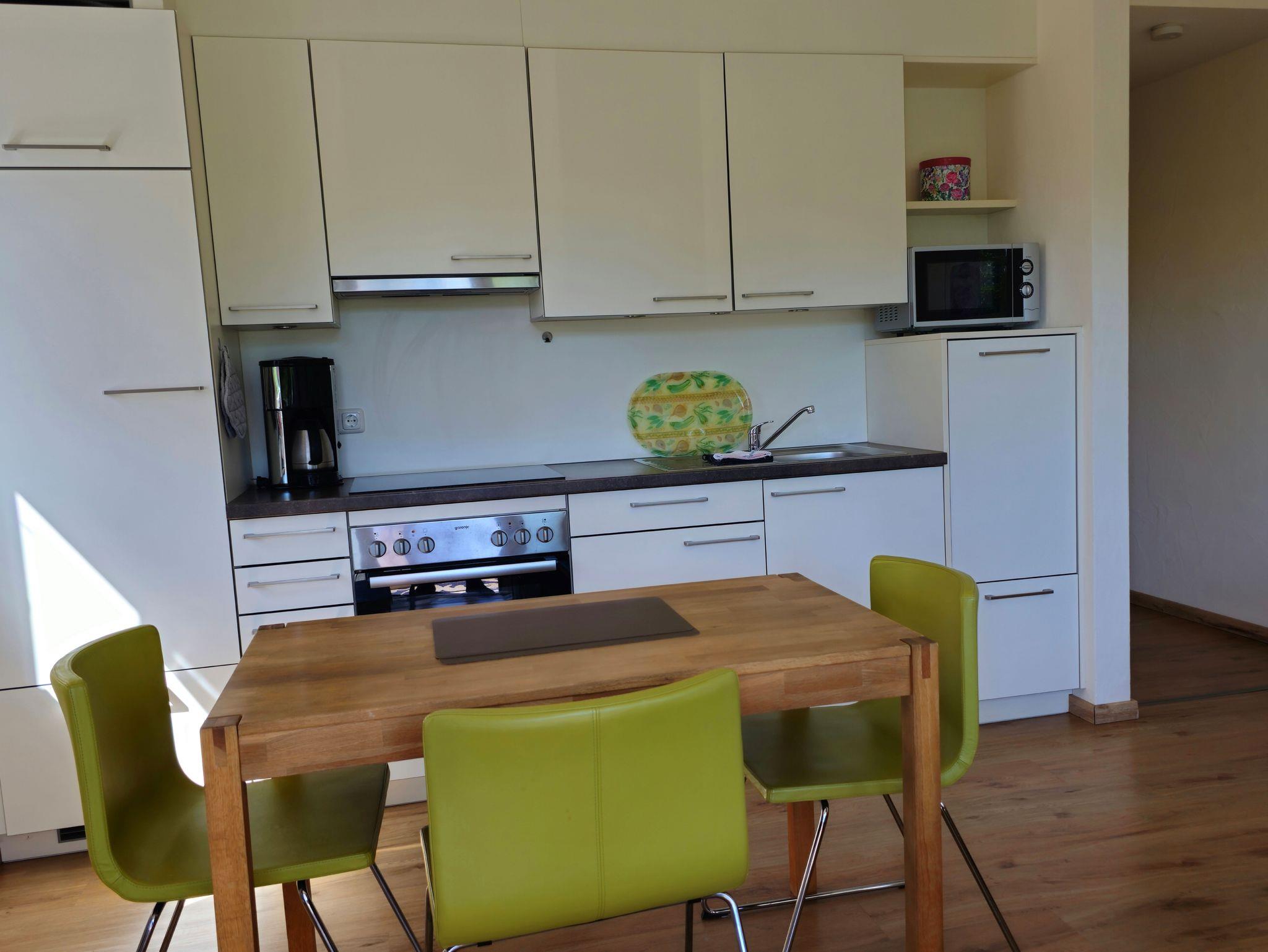Die Wohnung bietet eine elegante Möblierung, TV und kostenloses WLAN. Der große Balkon ist nach Süden ausgerichtet mit Blick ins Grüne.