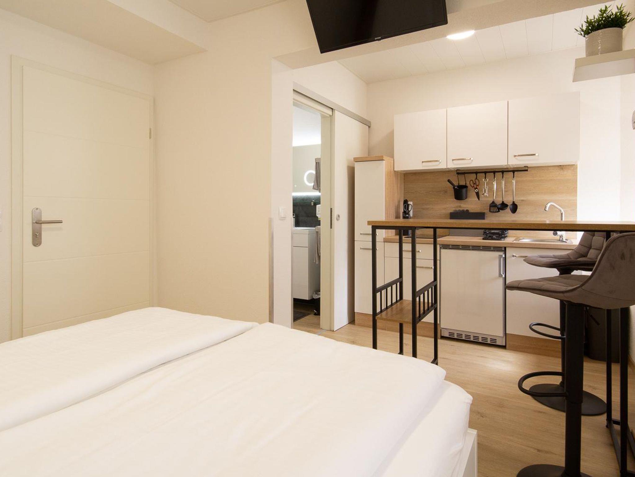 Das moderne Appartement Romantik hat eine Größe von 20 m², befindet sich im Haus Romantika im Erdgeschoss und ist ideal für 1-2 Personen.