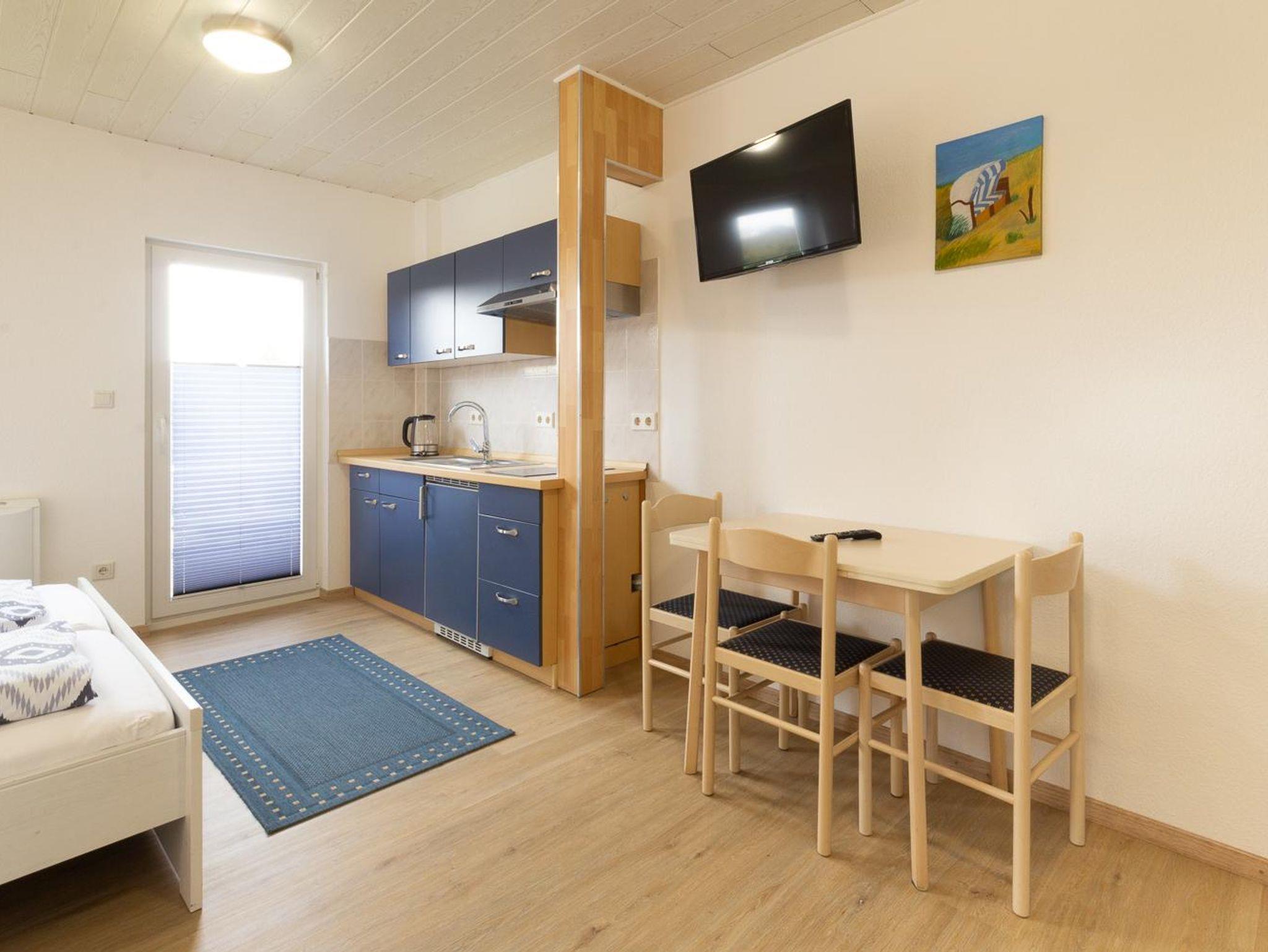 Das Appartement Strandkorb befindet sich im Haus Maritim im Erdgeschoss. Das Appartement hat eine Größe von 35 m² und bietet Platz für 1-4 Personen.