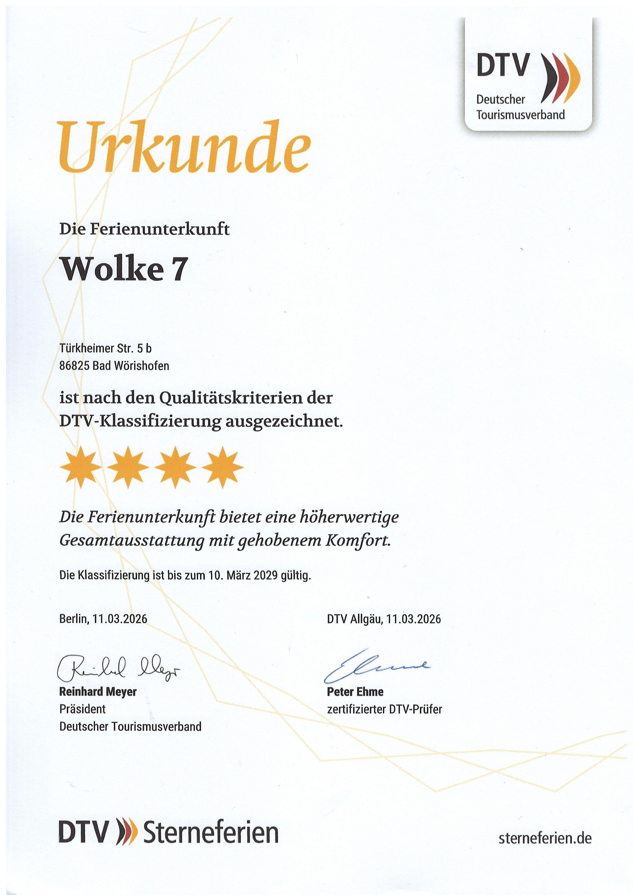 mit 4 Sternen klassifiziert, Gültigkeit bis 10. März 2029,