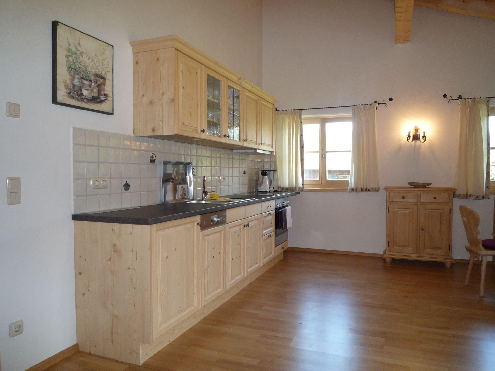 Großzügige FeWo mit offenem Dachstuhl, Küchenzeile mit Vollausstattung; Wohnraum mit Essecke und Ausziehcouch. Suedbalkkon; Schlafzimmer und Du/Wc; Zugang der einläufige Aussentreppe.