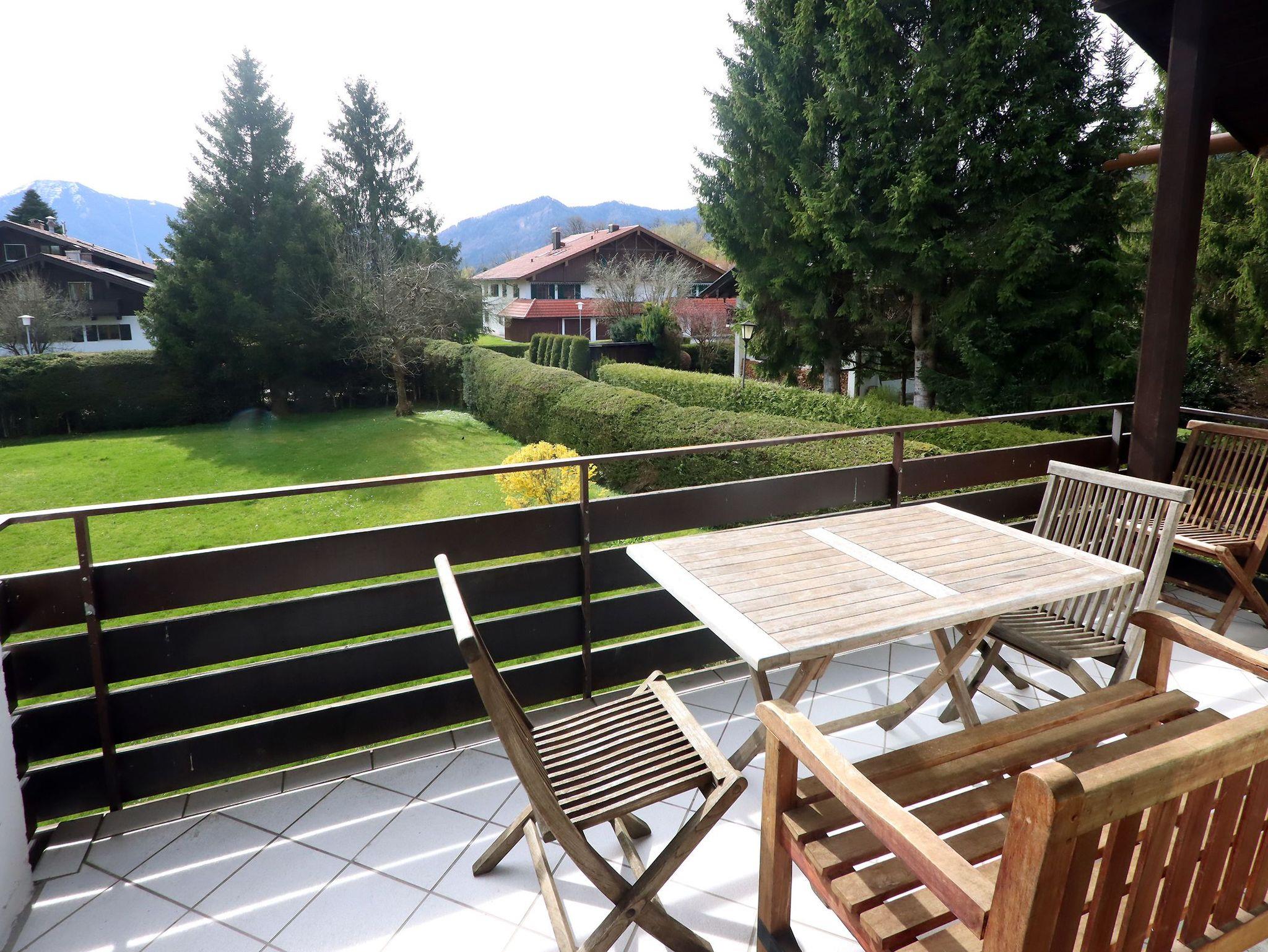 • Südbalkon, möbliert mit 4 Stühlen, Tisch, Sonnenschirm