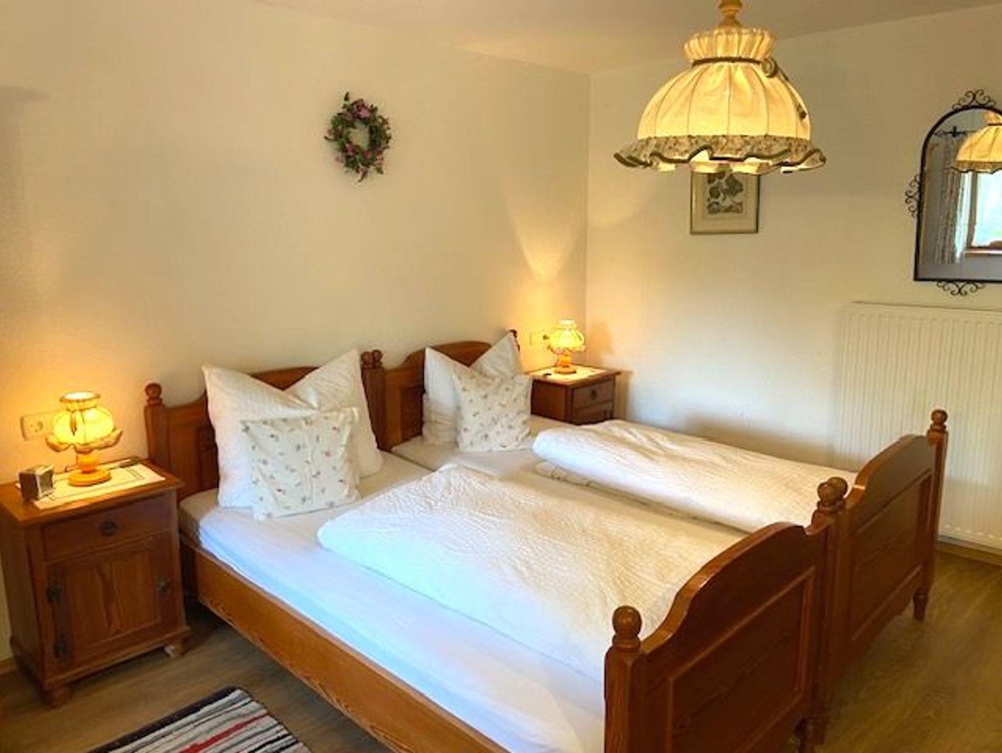Unser kleines (22 qm), liebevoll mit Bauernmöbeln eingerichtetes Einzimmerapartment für Nichtraucher, ist für zwei Gäste ausgerichtet und befindet sich im 1. OG. Das Apartment verfügt über ein Doppelbett, eine kleine Küchenecke mit Wasserkocher und Kaffeemaschine für die Frühstückszubereitung sowie über ein Bad mit Dusche und WC.