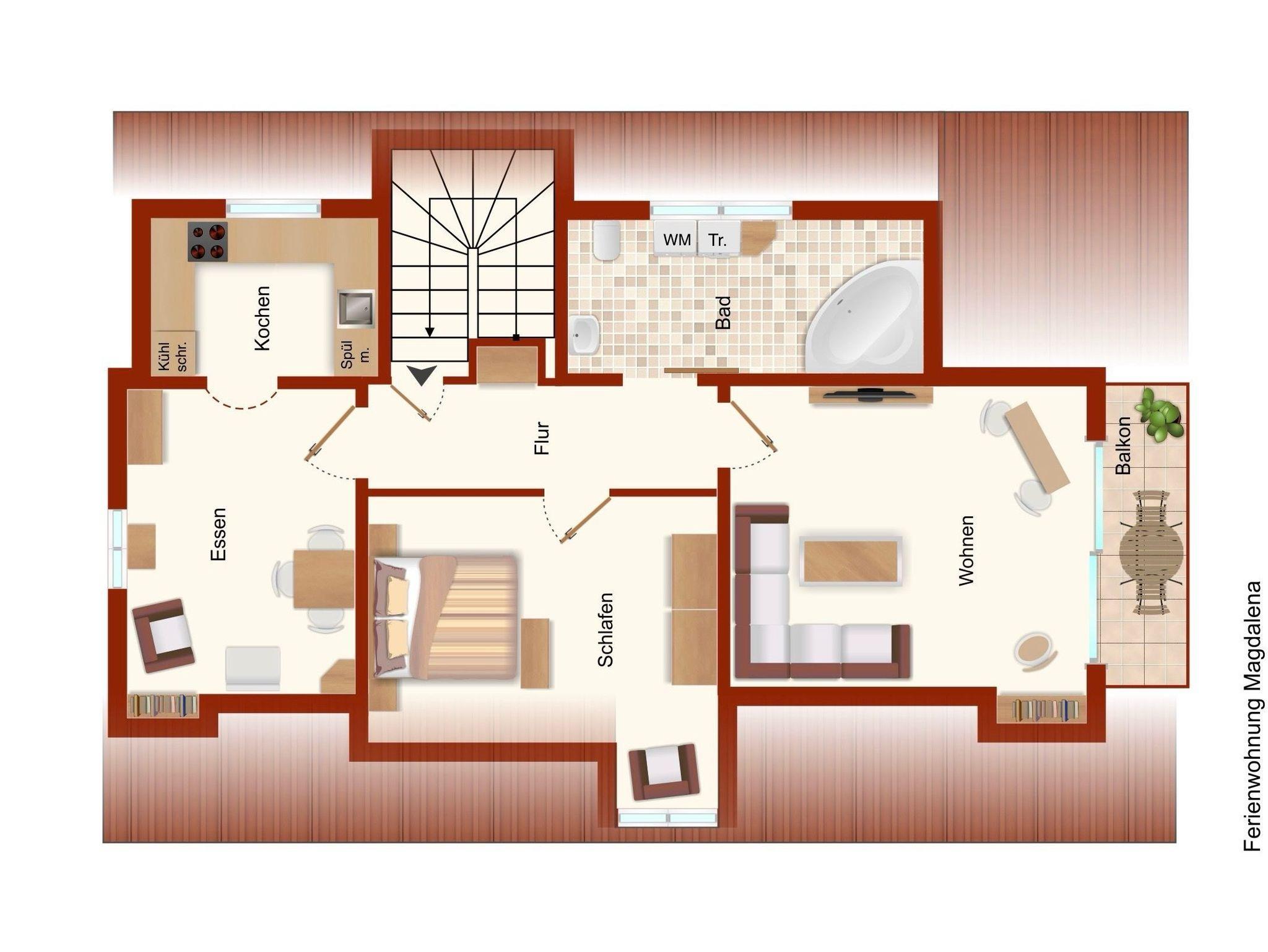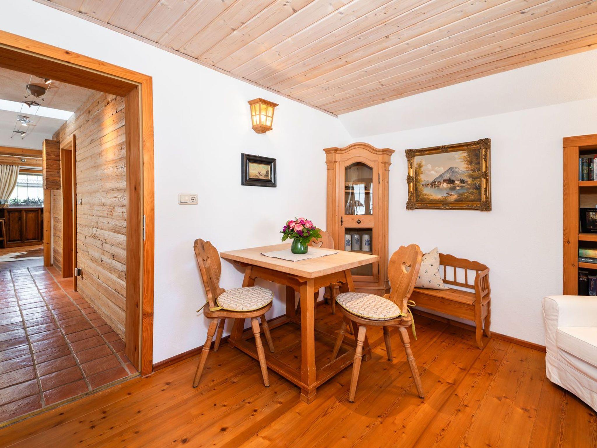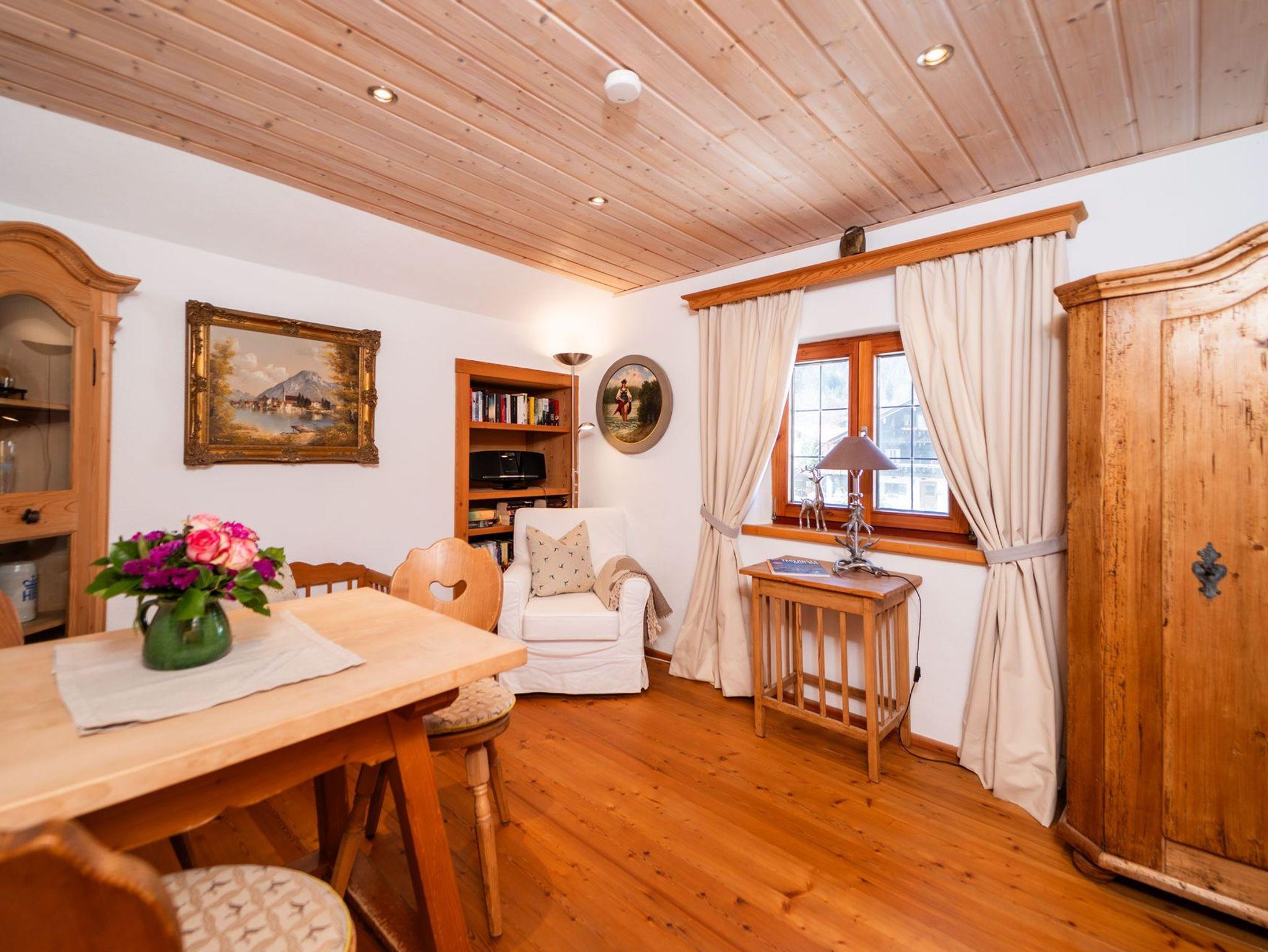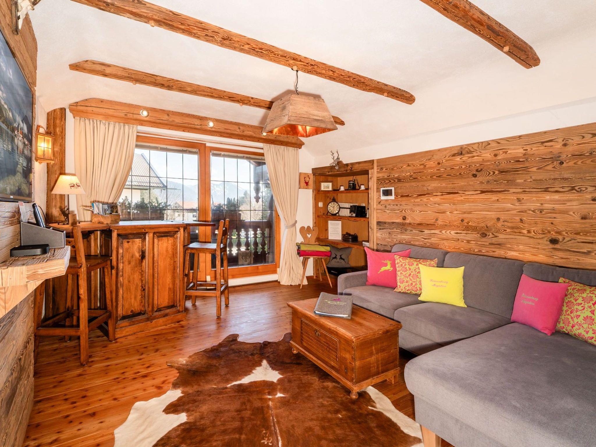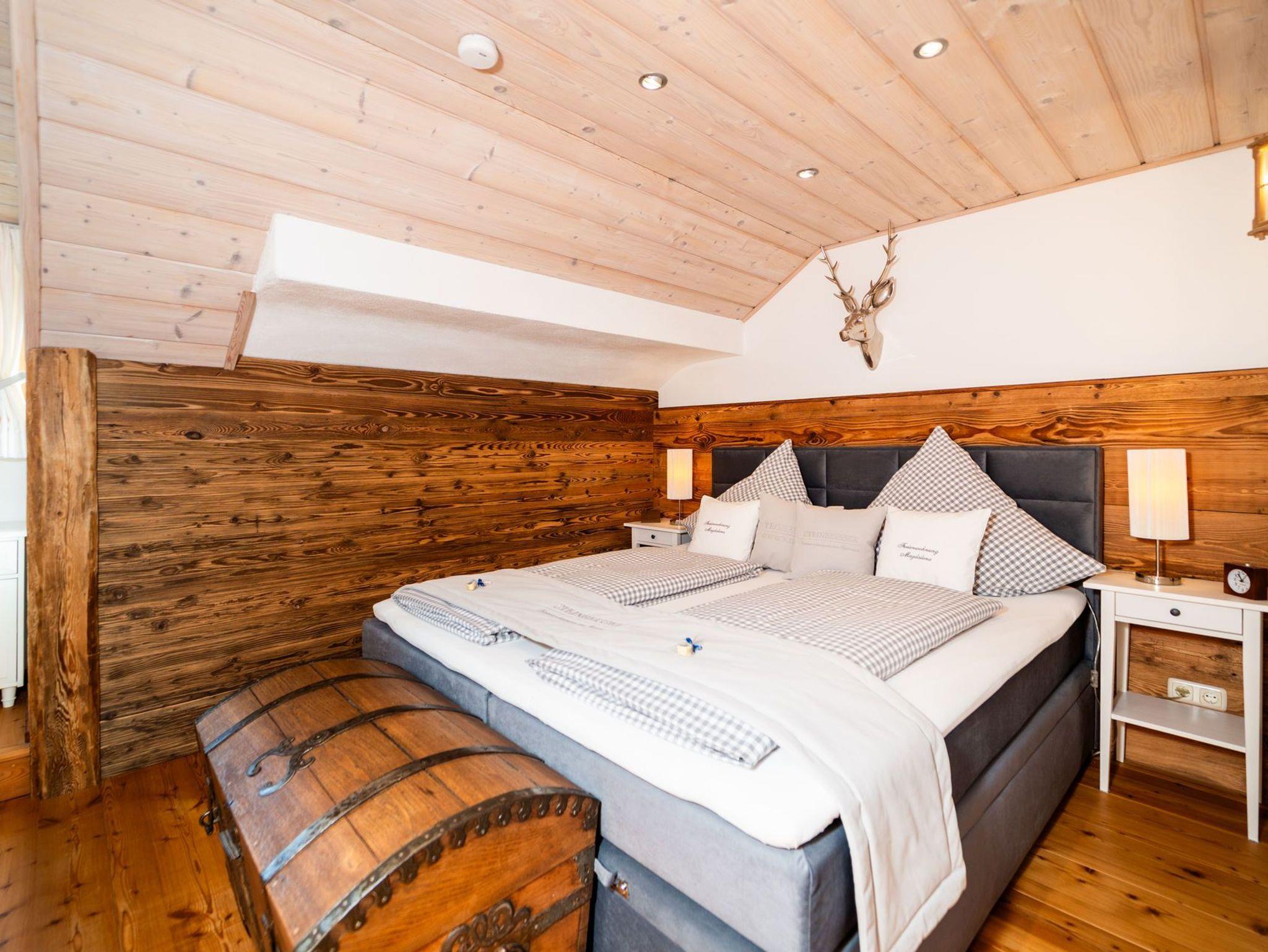 Die gemütliche und laufend renovierte Nichtraucherwohnung mit 3 Zimmern, separater Küche, Bad und Diele, erstreckt sich über das komplette Dachgeschoss des Hauses. Dadurch haben Sie in Ihrer Ferien-Unterkunft keine störenden Nachbarn, weder neben noch über sich. Hochwertig und rustikal aber modern im oberbayerischen Stil ausgebaut, werden Sie sich von Anfang an wie zu Hause fühlen. Hier treffen alte Materialien auf neue Technik. Verkleidungen und Einbauten wurden mit viel Liebe zum Detail aus echtem Altholz gefertigt, die Fußböden sind mit Landhausdielen ausgelegt. Hochwertige Stoffe schaffen eine die gemütliche Atmosphäre in allen Räumen. Eine kleine Bibliothek befindet sich im Esszimmer, im Wohnzimmer gibt es eine ausziehbare Eck-Couch mit Schlaffunktion (z.B. für getrennt schlafende Paare). Dort steht auch eine kleine Bar mit Barhockern, um den Tag nach Ihren Aktivitäten gebührend ausklingen lassen zu können. Die voll ausgestattete Küche mit Induktionsherd, Backofen, Kühlschrank und Spülmaschine lässt keine Wünsche offen. Nespresso- sowie normale Kaffeemaschine, Wasserkocher und Toaster sind dort ebenso selbstverständlich wie ausreichend Geschirr und Besteck. Das Badezimmer bietet Ihnen neben Waschtisch mit zusätzlichem Kosmetikspiegel, Haartrockner, WC, Fußbodenheizung sowie übergroßer Badewanne inkl. Whirlfunktion und ausziehbaren Duschkopf auch die Möglichkeit, die hier bereitgestellte Waschmaschine und den Trockner zu benutzen (gegen Gebühr). Auf dem überdachten und regengeschützten Balkon befinden sich moderne Flechtmöbel. Gerne können Sie sich aber auch auf der Liegewiese hinter dem Haus mit einem guten Buch entspannen. Liegestühle, Gartenmöbel und ein Außengrill stehen dort zu Ihrer freien Verfügung. Frische Bettwäsche, kuschelige Bademäntel und Handtücher sowie Endreinigung sind im Preis enthalten, ebenso wie die Tegernsee-Card für jeden Gast.