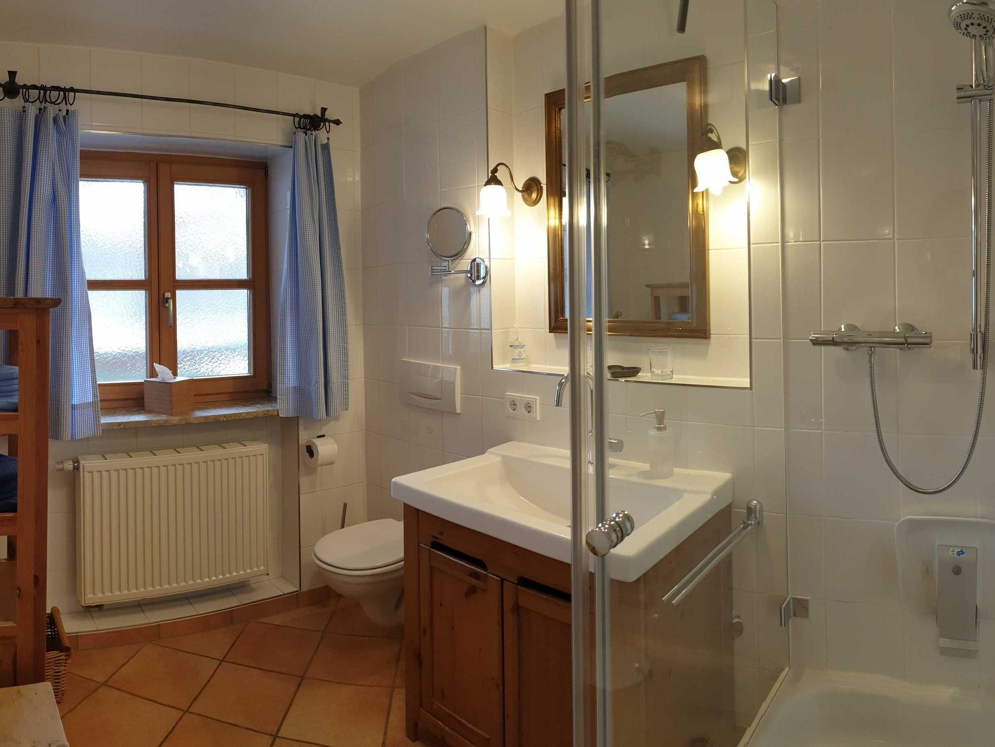 • Bad mit Dusche/WC, Fußbodenheizung, Föhn, Kosmetikspiegel, Handtücher