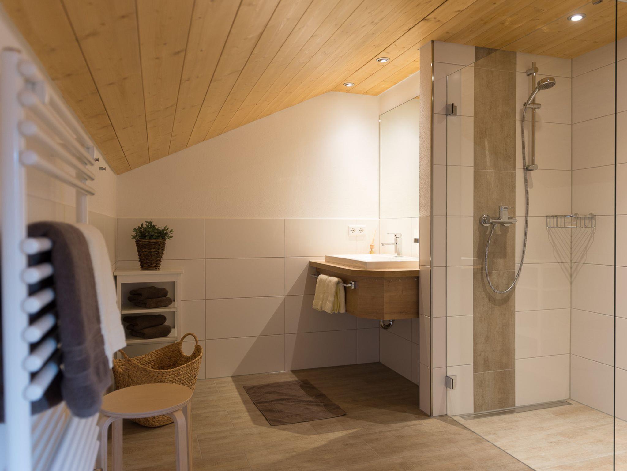 * Bad mit Dusche, Föhn und Kosmetikspiegel